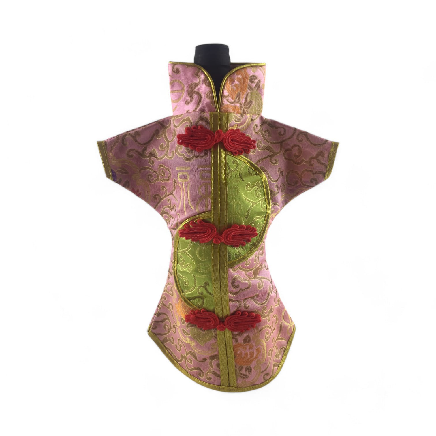 Этот элегантный чехол на бутылку выполнен в традиционном восточном стиле и напоминает миниатюрное кимоно. Он изготовлен из прочной ткани с ярким орнаментом, включающим символы и изображения, типичные для восточной культуры.