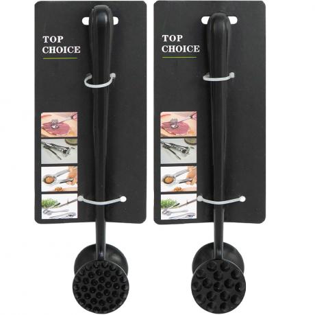 Металевий молоток для відбивання м’яса 1635E призначений для підготовки м’ясних продуктів до приготування та рівномірної обробки волокон. Двостороння робоча частина дозволяє ефективно відбивати м’ясо різної щільності, роблячи його м’якшим і соковитішим. Довжина виробу становить 22 см, вага — 248 г, що забезпечує зручний баланс і комфортне зусилля під час роботи. Міцна металева конструкція підходить для регулярного використання вдома та на професійній кухні. Ергономічна ручка зручно лежить у руці та забезпечує надійний контроль. Виріб упакований у блістер розміром 8×16 см і додатково захищений пупирчастою упаковкою для безпечного транспортування та зберігання. Оптимальний товар для оптового продажу та роздрібної торгівлі кухонним приладдям.