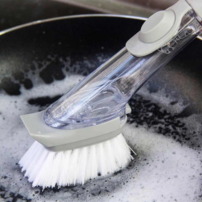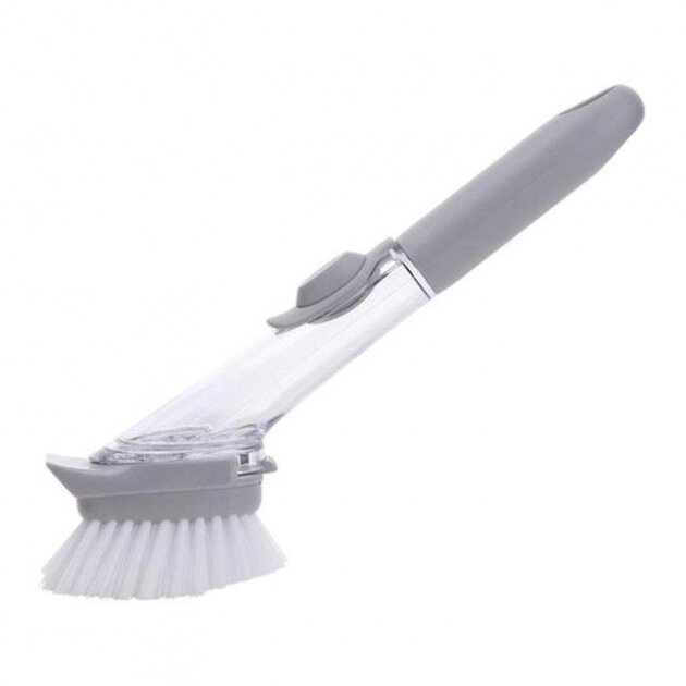 Щетка c дозатором для посуды Cleaning Brush Подается жидкость дозировано, что является неоспоримым преимуществом для экономных хозяек. При необходимости Вы просто нажимаете на копку в верхней части щётки и получаете очередную порцию жидкости для мытья посуды. Данная щётка совмещает в себе практически всё, что нужно для мытья кастрюль, тарелок, чашек и сковородок. Нейлоновые ворсинки быстро удалят с поверхности посуды все лишнее, не оставив при этом ни единой царапины. Данная щеточка способна отмыть даже прилипшие остатки пищи. Щётка с дозатором – это не только экономично, но и гигиенично. Само устройство выполнено из качественного и прочного пищевого пластика. Он не токсичен, не имеет посторонних запахов и безопасен для здоровья.