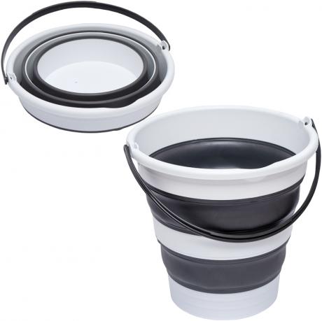 Універсальне складане відро знайде своє призначення у будь-якому будинку. Відмінно підійде для поїздок та подорожей, а також для повсякденних домашніх завдань. Відмінно тримає форму при використанні та складається до 6,5 см при зберіганні. Матеріал: пластик, силікон. Розмір у складеному вигляді 32*6,5 см, розмір у розкладеному вигляді 32*32*19см. Ємність 15 літрів