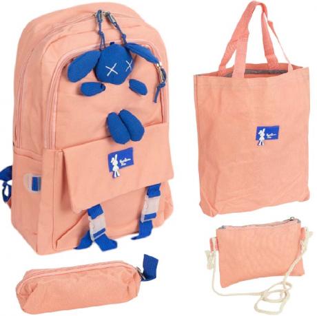 Набір 4 в 1 із вухатим декором: рюкзак, сумка, косметичка, пенал 5056 РОЖЕВИЙ