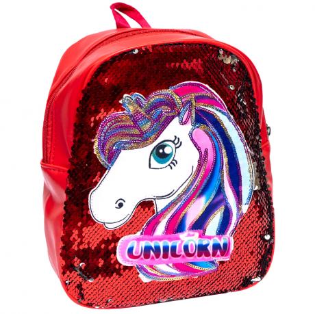 Рюкзак дитячий з паєтками Єдиноріг SM-7-2 Червоний-срібло екошкіра, 26*22*9см