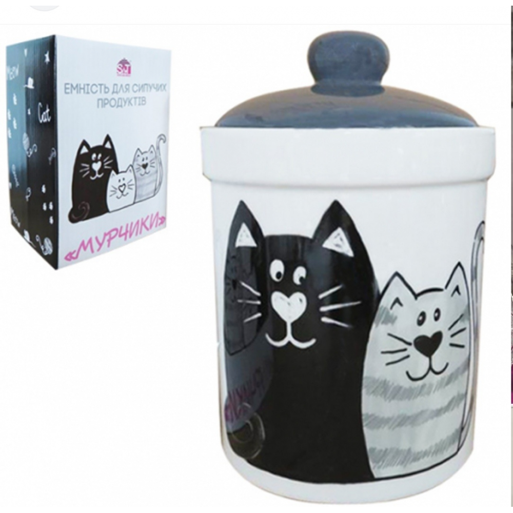 Керамічна банка (770мл) для сипучих продуктів*Мурчики* з силіконовим ущільнювачем