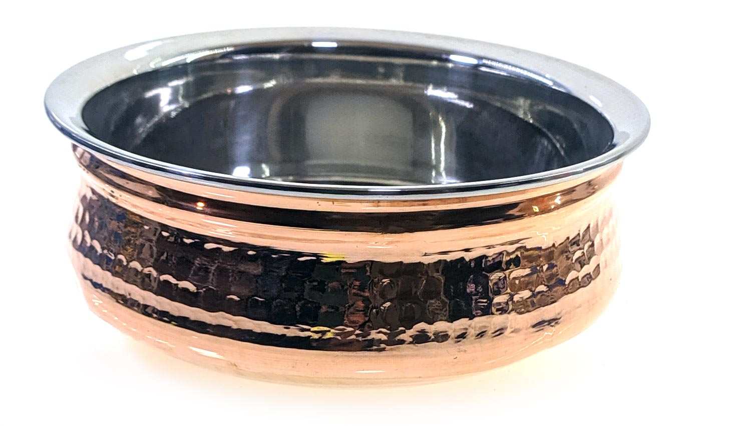 Это красивое и практичное блюдо выполнено из нержавеющей стали и меди. Его диаметр составляет 15 см, а высота - 6 см. Блюдо отличается высоким качеством и долговечностью материалов, из которых оно изготовлено. Нержавеющая сталь устойчива к коррозии и не подвержена ржавчине, а медь обладает прекрасными теплопроводными свойствами и приятной на ощупь поверхностью.