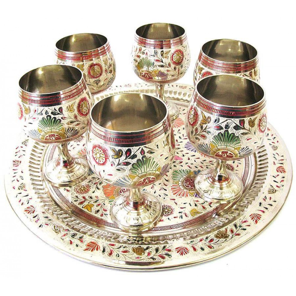 Бокалы бронзовые хром на круглом подносе (н-р 6 шт/70мл.)(h-11 см поднос d-31см)