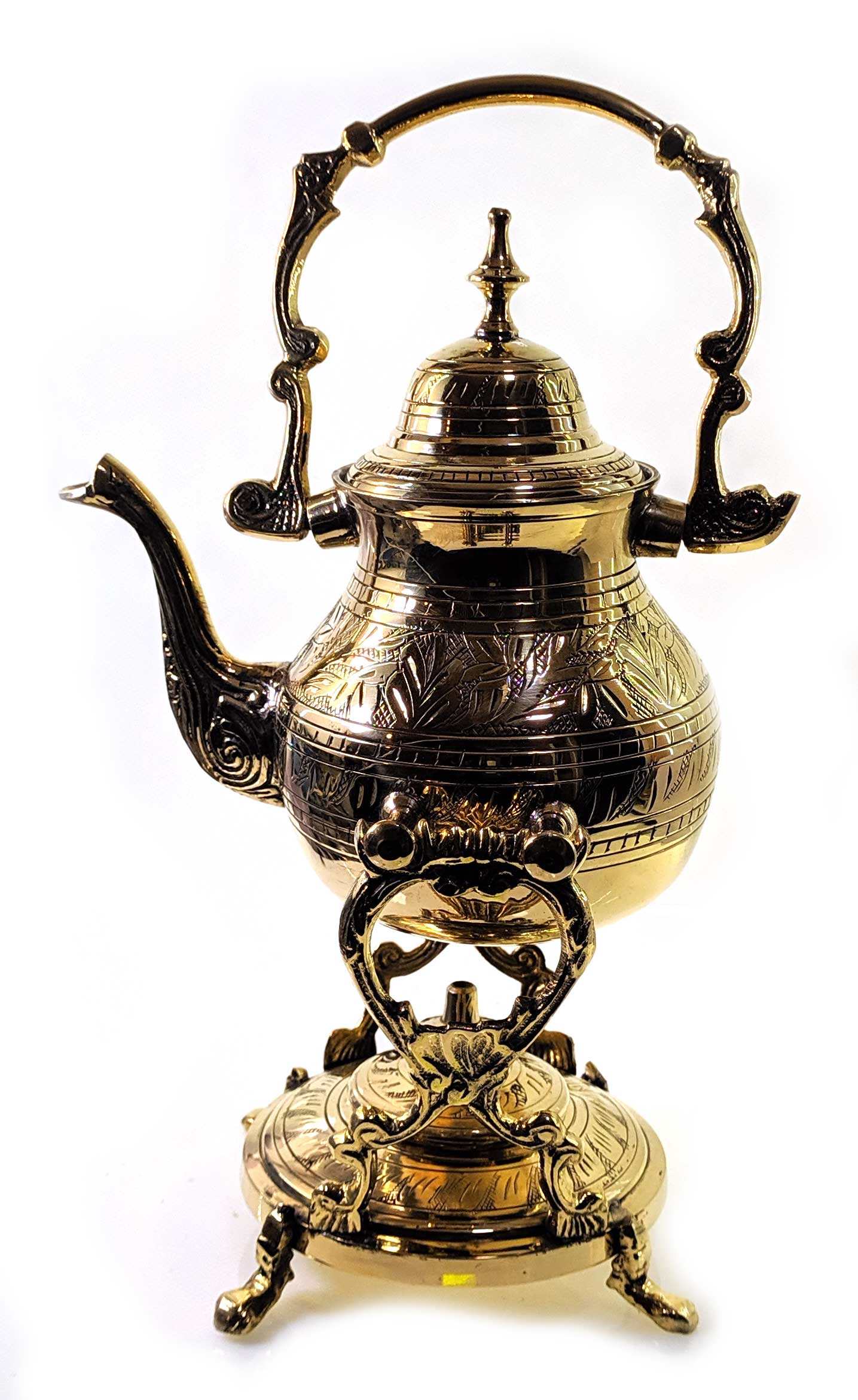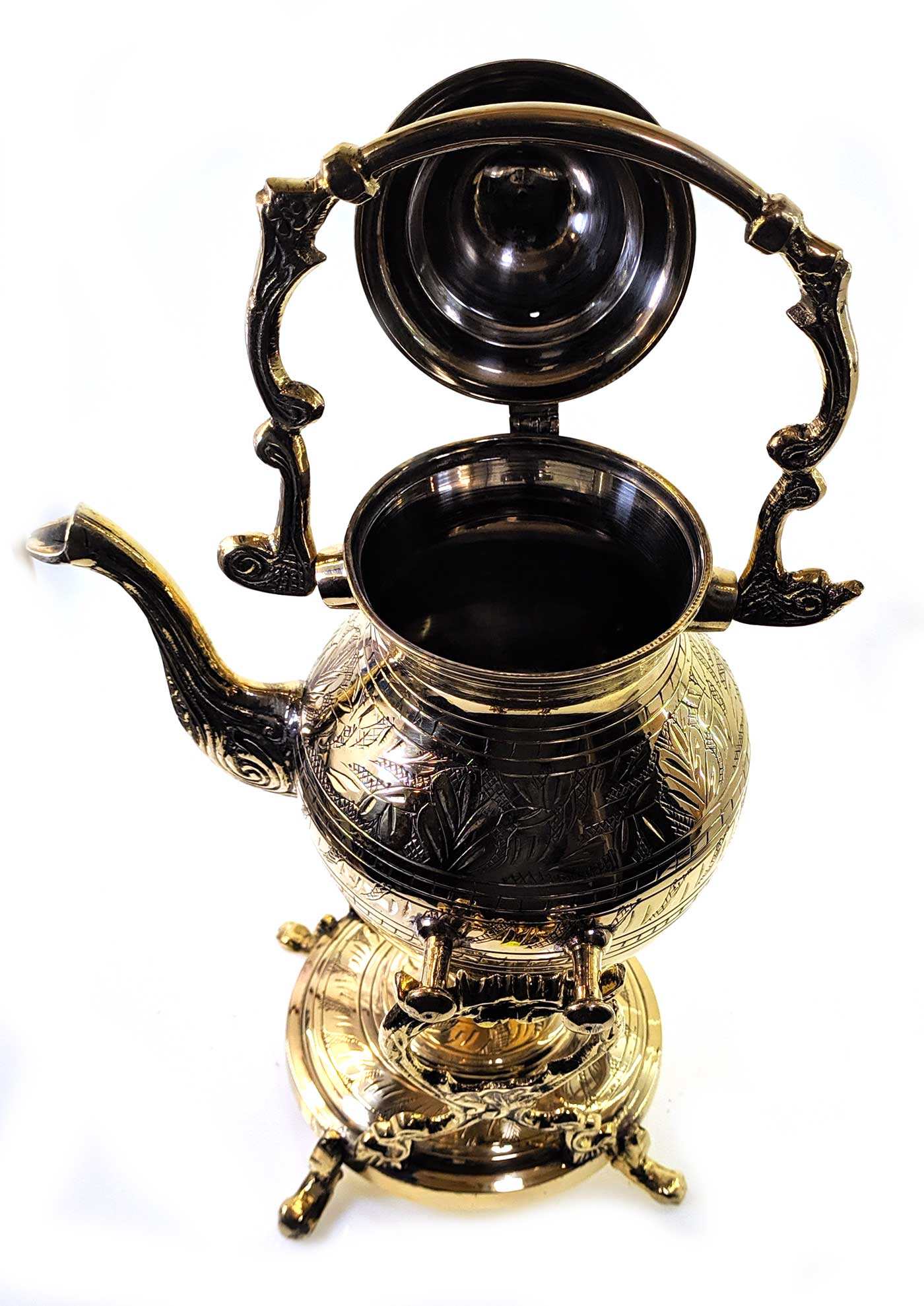 Чайник и горелка изготовлены из прочной бронзы, что обеспечивает долговечность и надежность использования. Красиво выполненная отделка и детали придают этому чайнику особый шарм и уникальность.