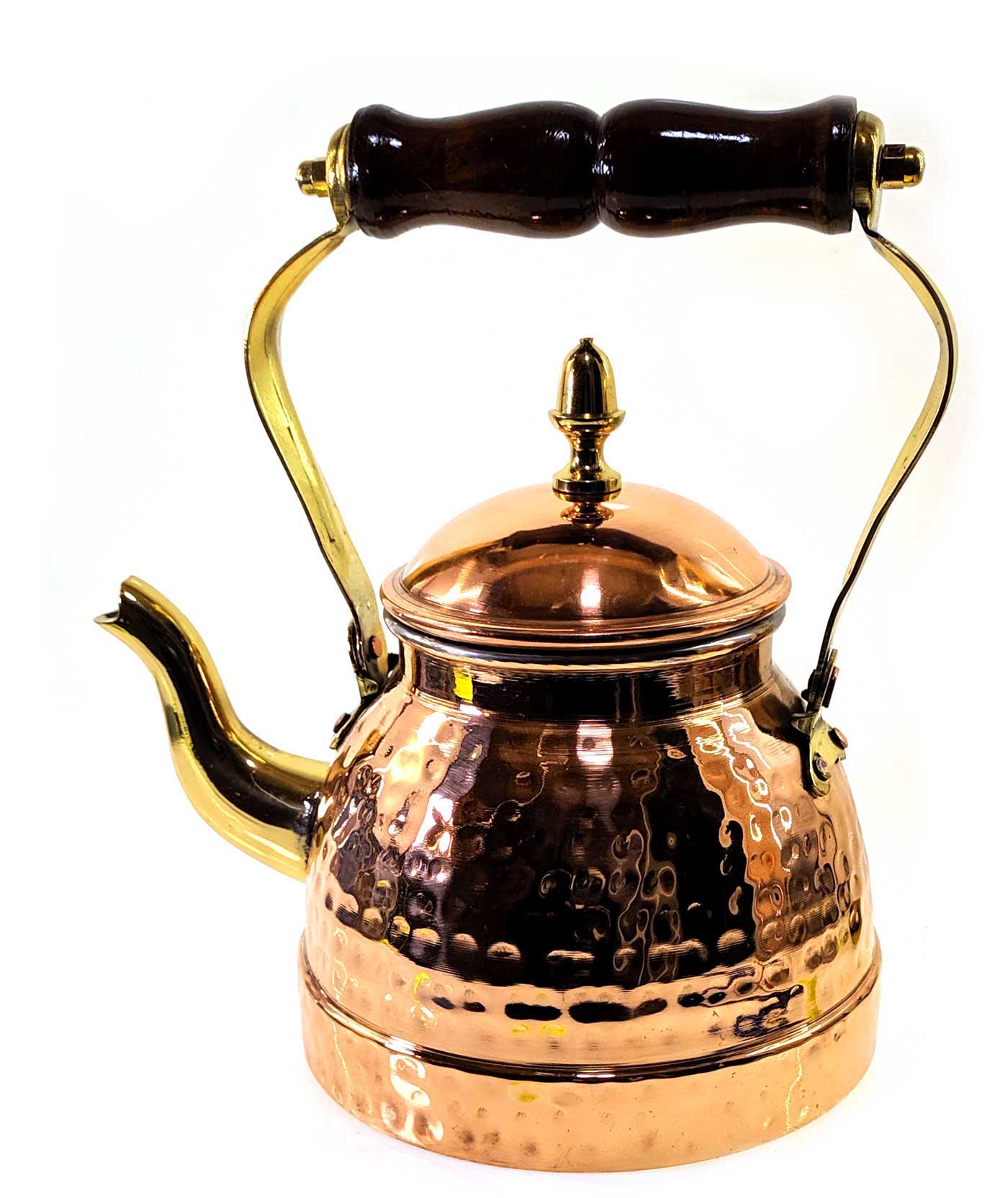 Этот красивый медный чайник имеет объем 1 литр и размеры 23х20х15 см. Он идеально подходит для заваривания чая или других горячих напитков и является прекрасным дополнением к вашей кухне или столовой. Этот чайник изготовлен из высококачественного медного металла, который не только прекрасно выглядит, но и обладает отличными теплоотдающими свойствами, что позволяет быстро нагревать воду и поддерживать ее горячей на протяжении длительного времени. Кроме того, этот чайник оснащен удобной ручкой и литой насадкой, которые обеспечивают комфортное и безопасное использование.