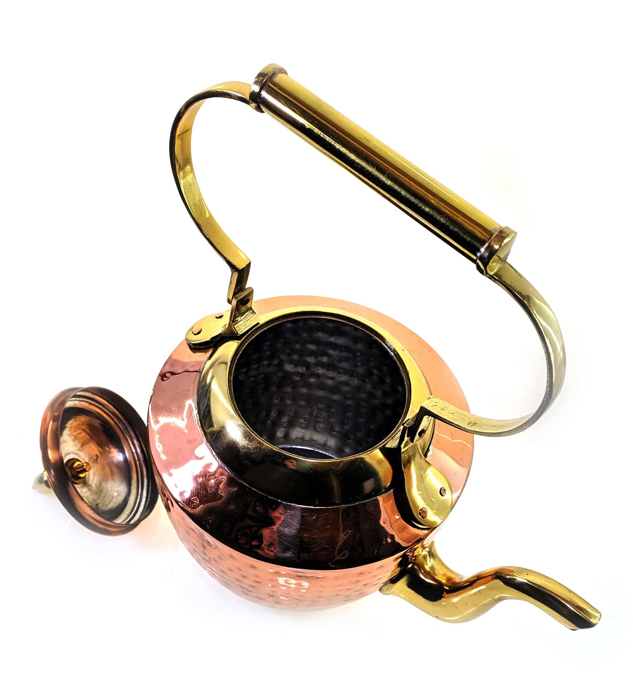 Чайник медный объемом 2 литра, размером 30х25х15 см. Этот красивый и уникальный чайник будет отличным дополнением к вашей коллекции посуды. Изготовленный из меди, он имеет отличные тепловые свойства и быстро нагревается. Чайник имеет красивый глянцевый блеск и дополнен ручкой и носиком из латуни, которые не только обеспечивают надежную защиту от ожогов, но и добавляют ему стильный вид. С его помощью вы сможете быстро и легко приготовить свой любимый чай и удивить своих гостей своим вкусом и стилем.