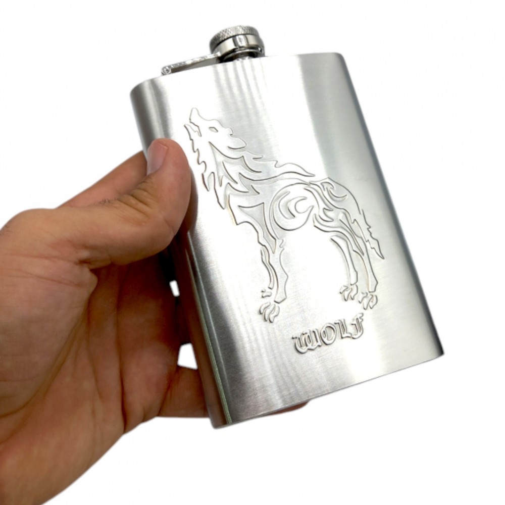 Фляга из нерж.стали "Волк" (230 мл.)(13,5х10х2 см)