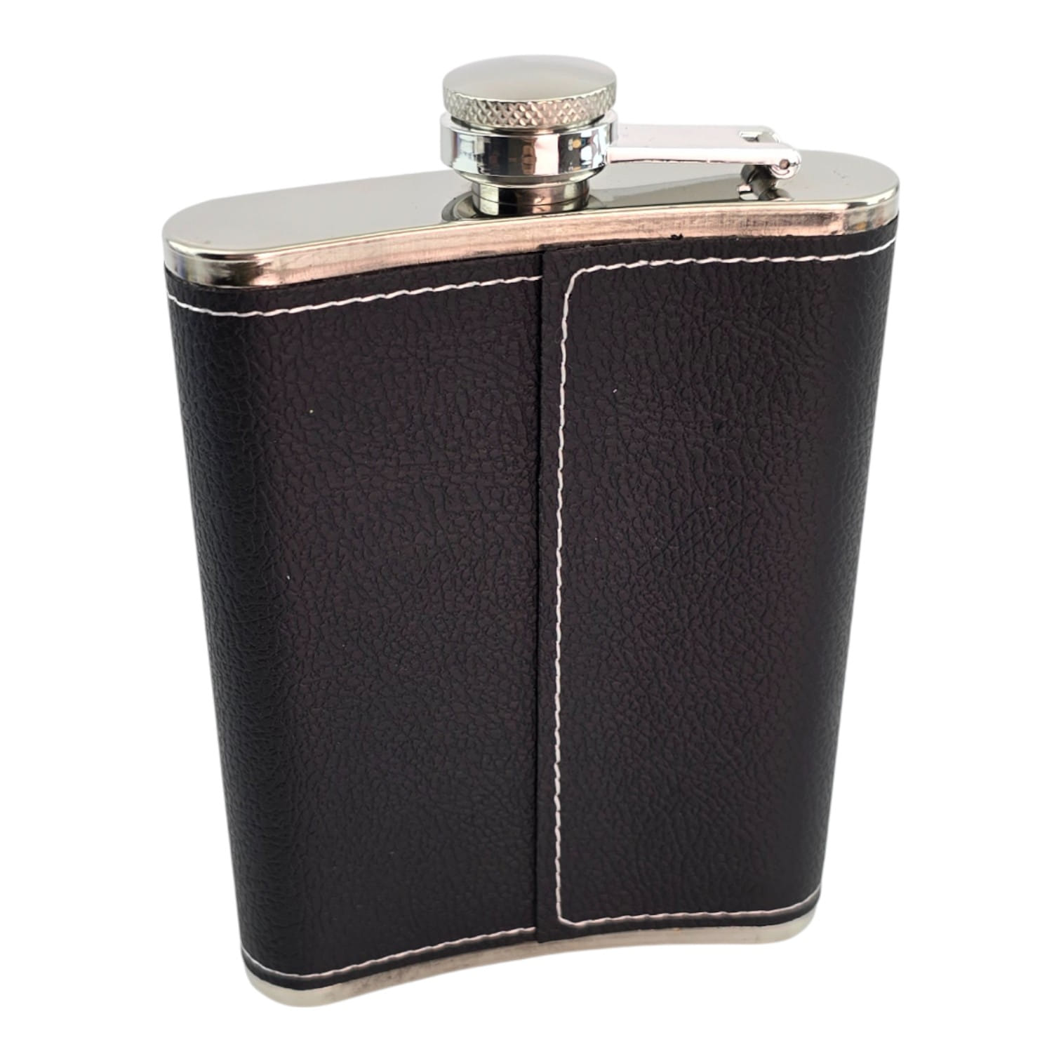 Компактная карманная фляга на 220 мл для крепких напитков. Корпус из нержавеющей стали имеет удобный изгиб, легко помещается в карман. Чёрная обшивка из экокожи приятна на ощупь и защищает от царапин. Винтовая крышка на шарнире не теряется и плотно закручивается. Подойдёт как практичный подарок, для поездок, рыбалки, пикников.