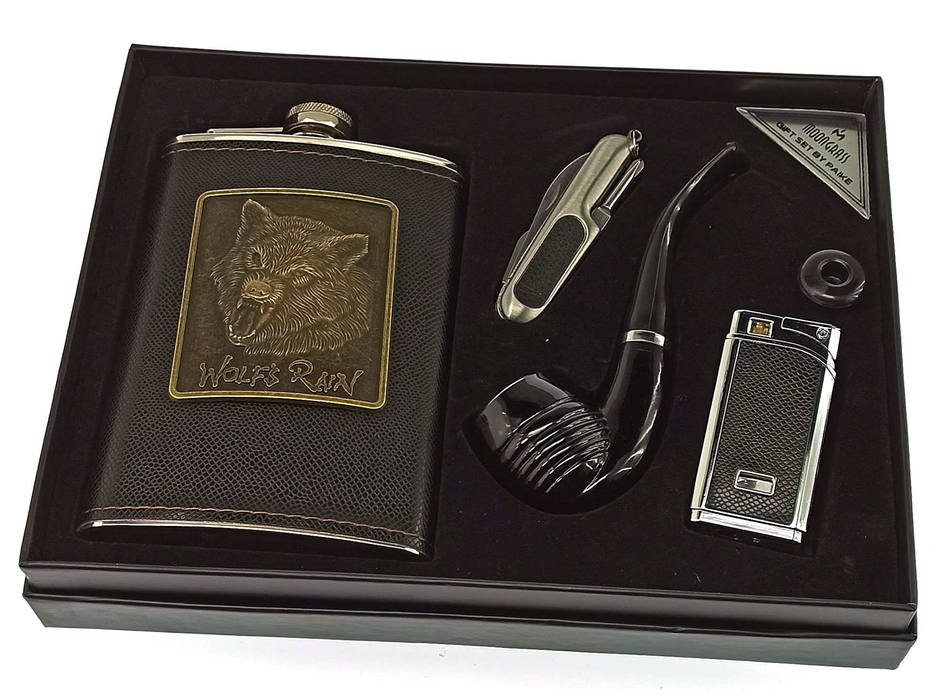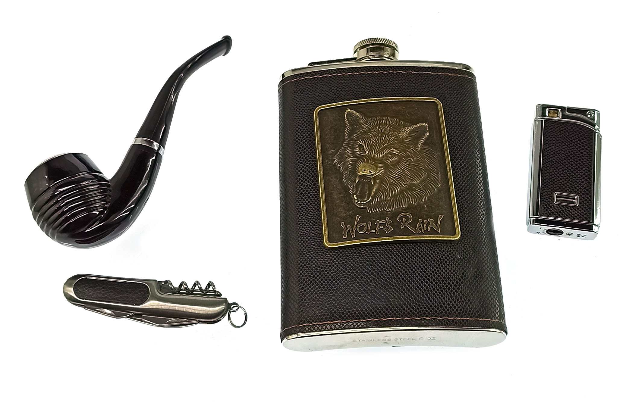 Фляга с трубкой,ножом и зажигалкой в подарочной упаковке (24х17,5х4 см)A