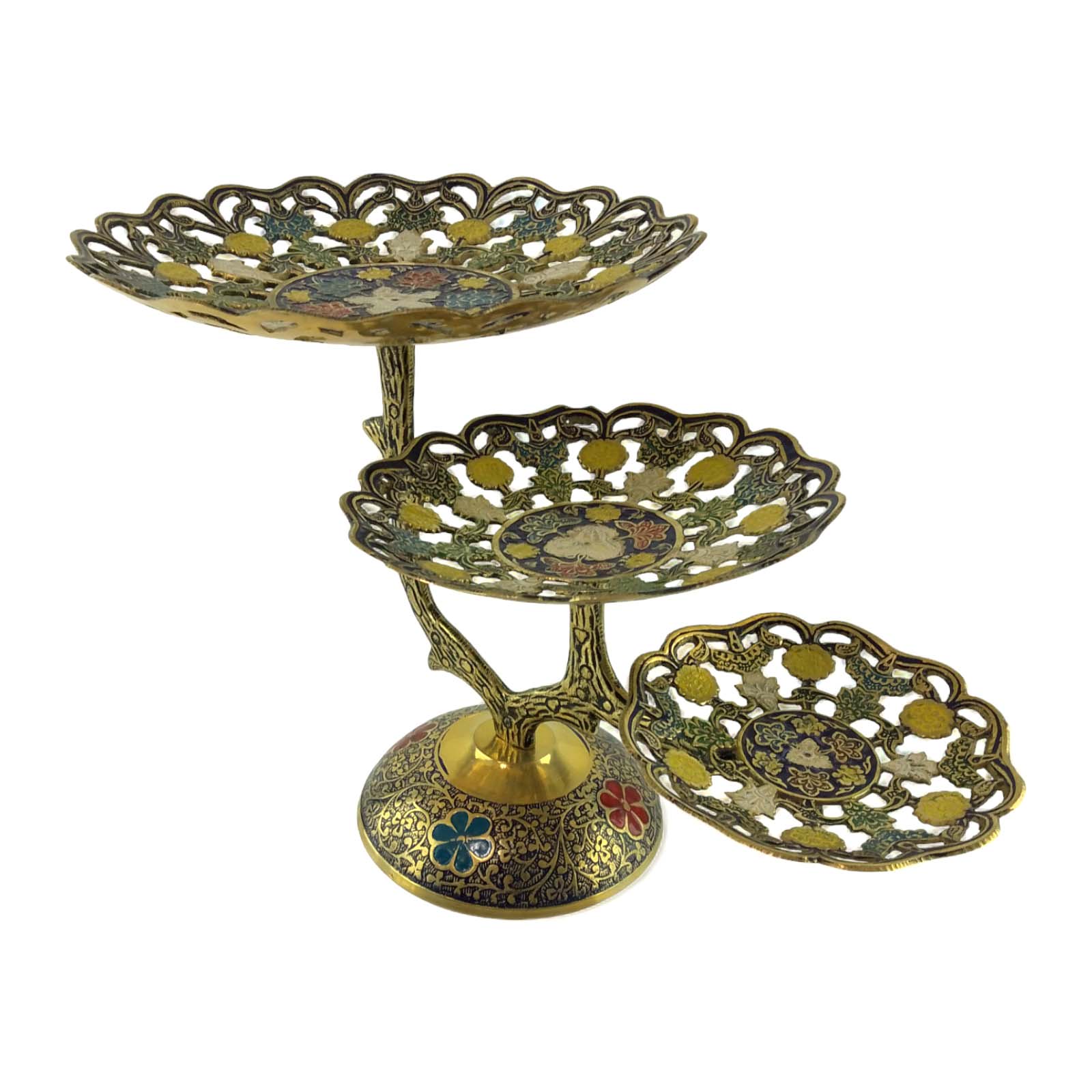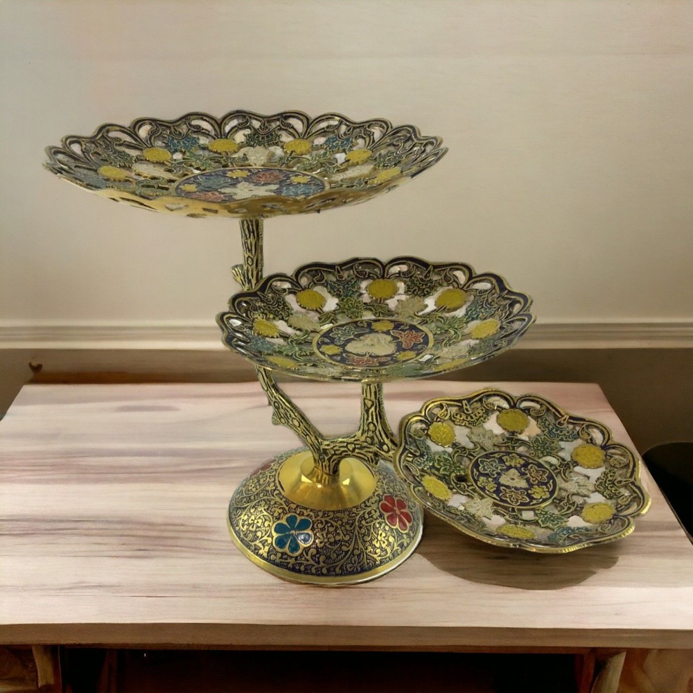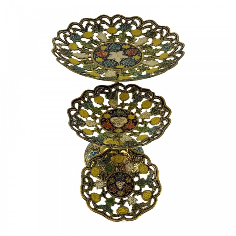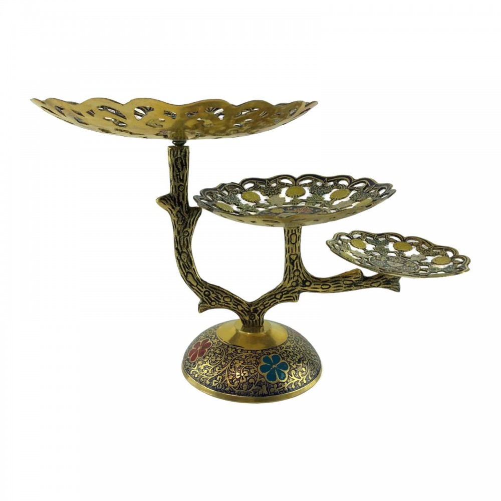 Фруктовница бронзовая 3 х яруcная, резная синяя ( 24х 38х22,5 см)