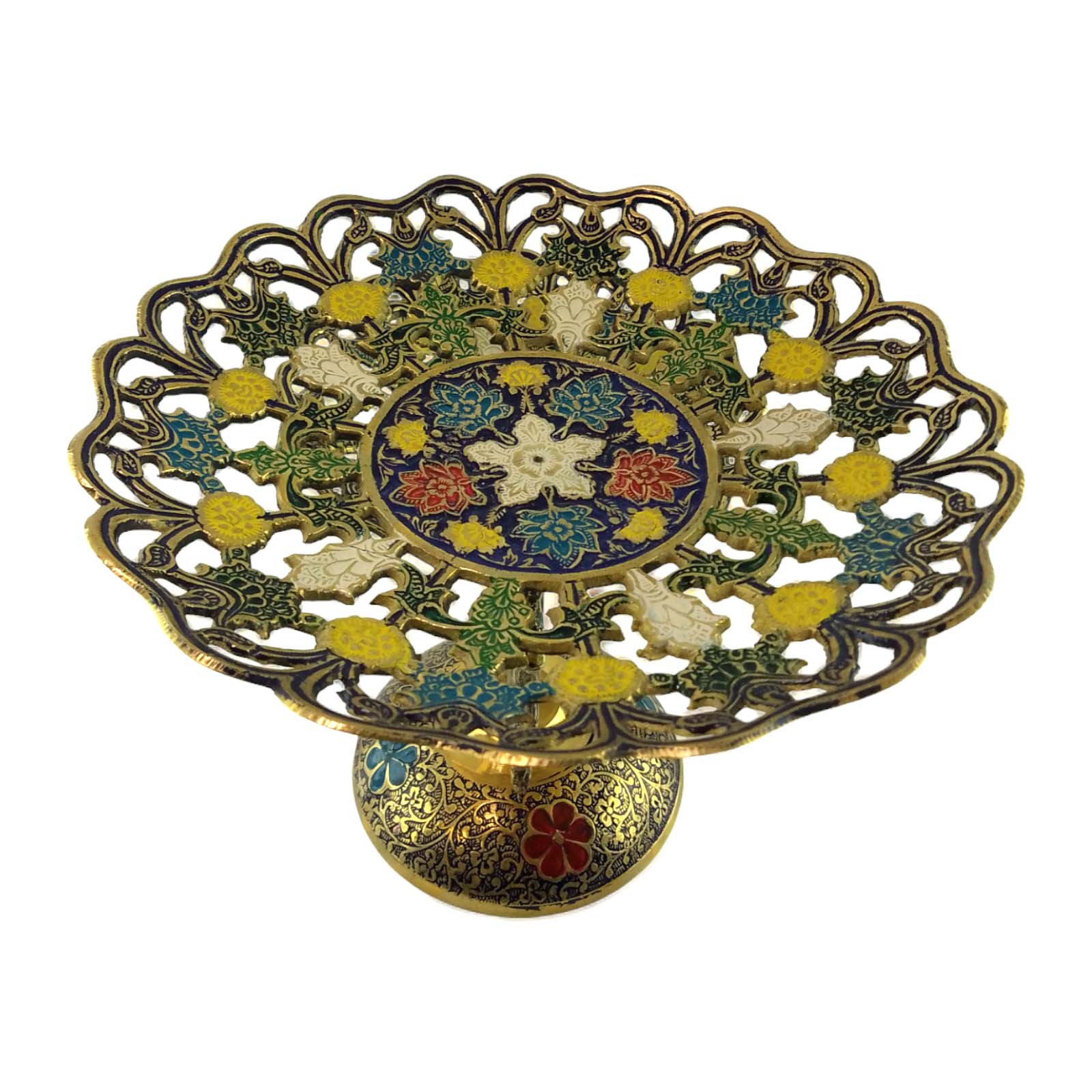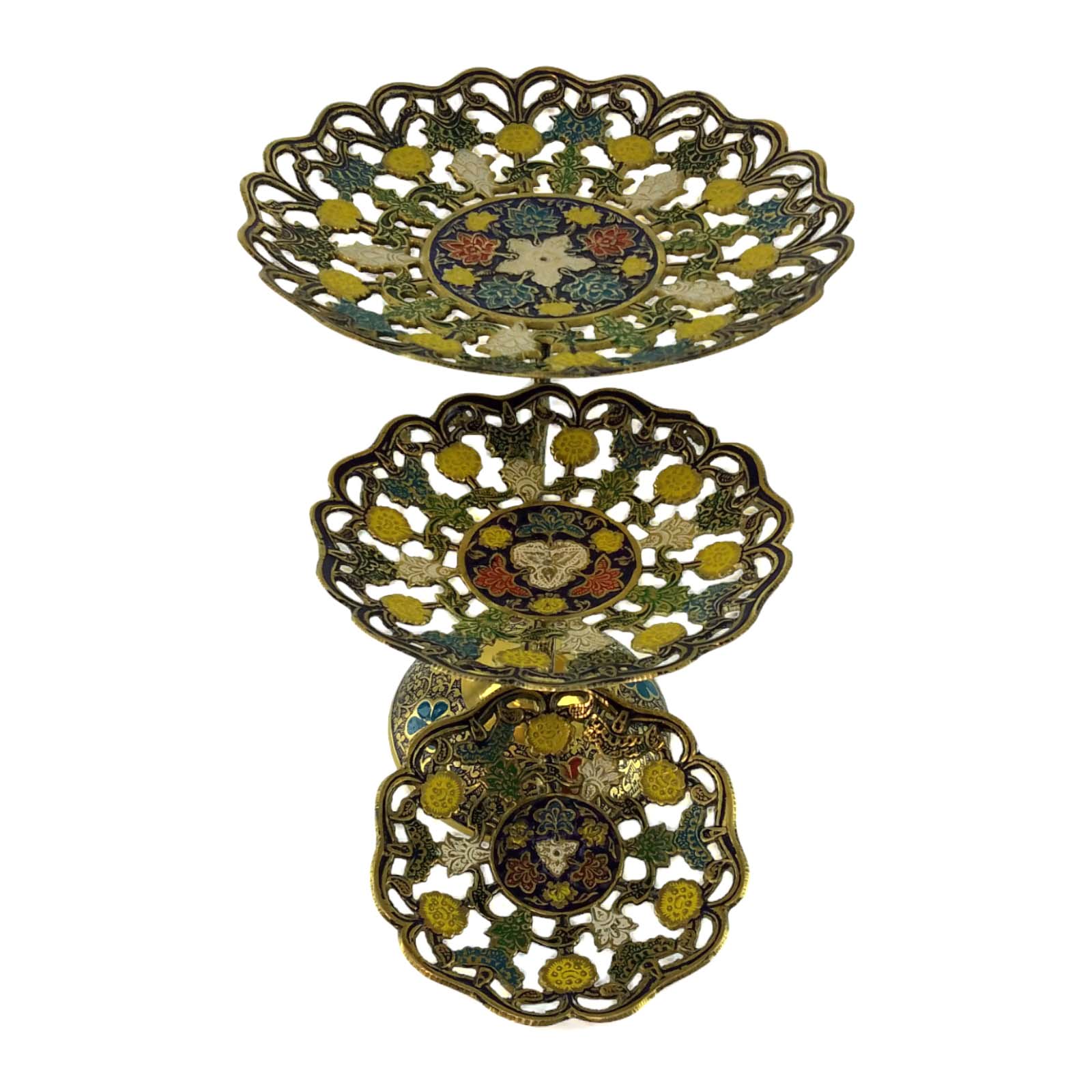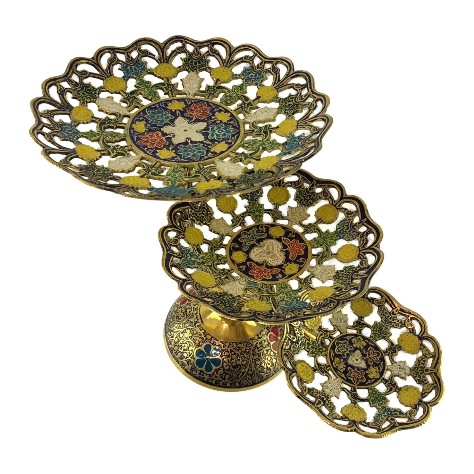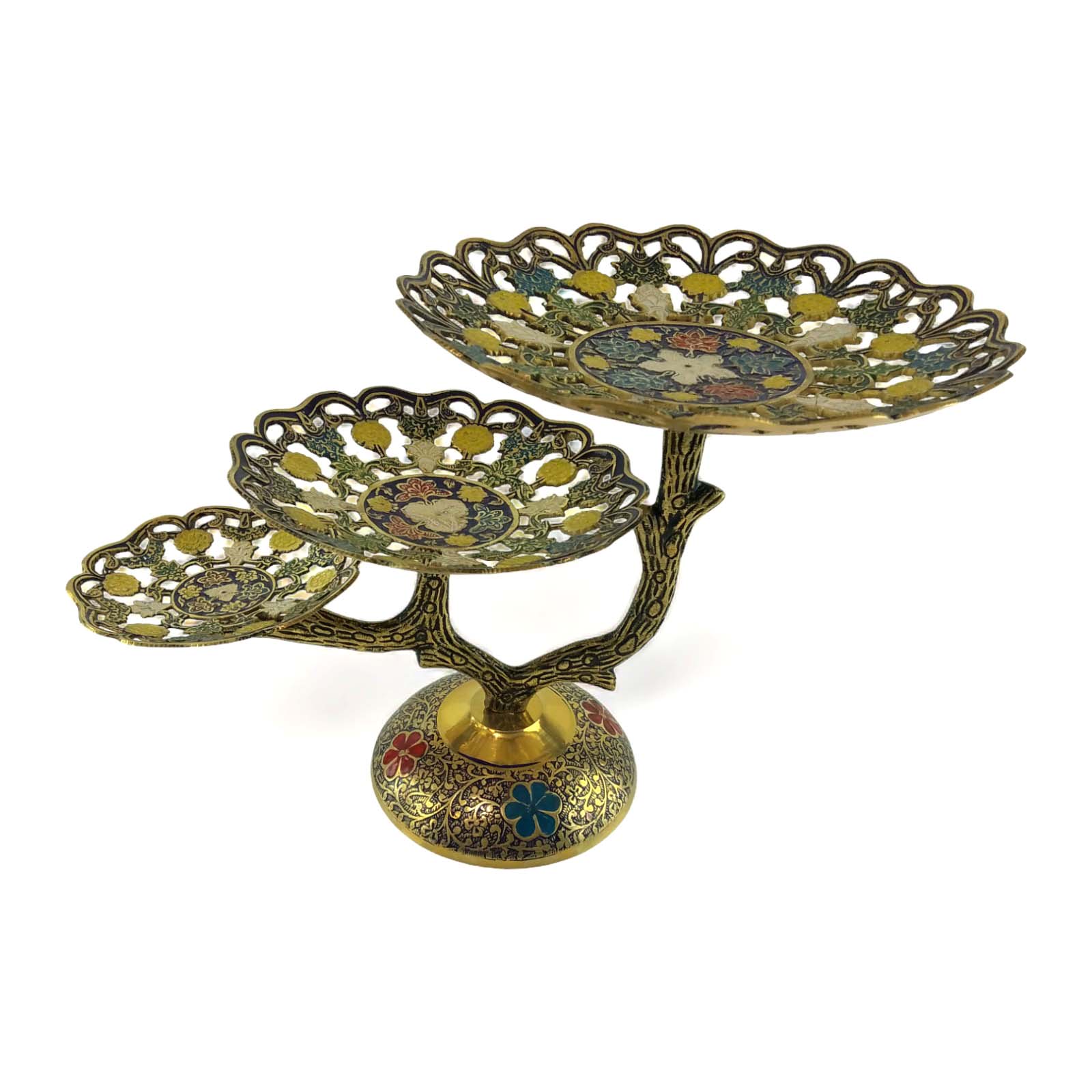 Фруктовница бронзовая 3 х яруcная, резная синяя ( 24х 38х22,5 см)