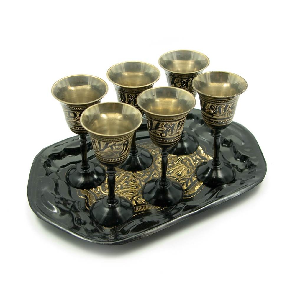 Сервиз бронзовый цветной, поднос, 6 рюмок 50мл., кувшин 250мл)(h-8 см поднос d-30)