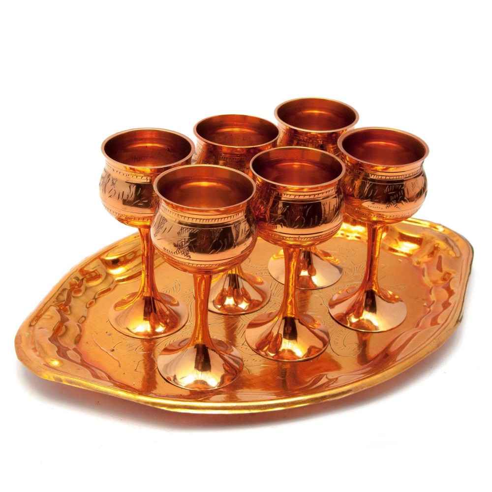 Рюмки бронзовые на подносе Медь (н-р 6 шт)(h-13 d-5,5 см)(80мл.)(поднос 30х20х1 см)