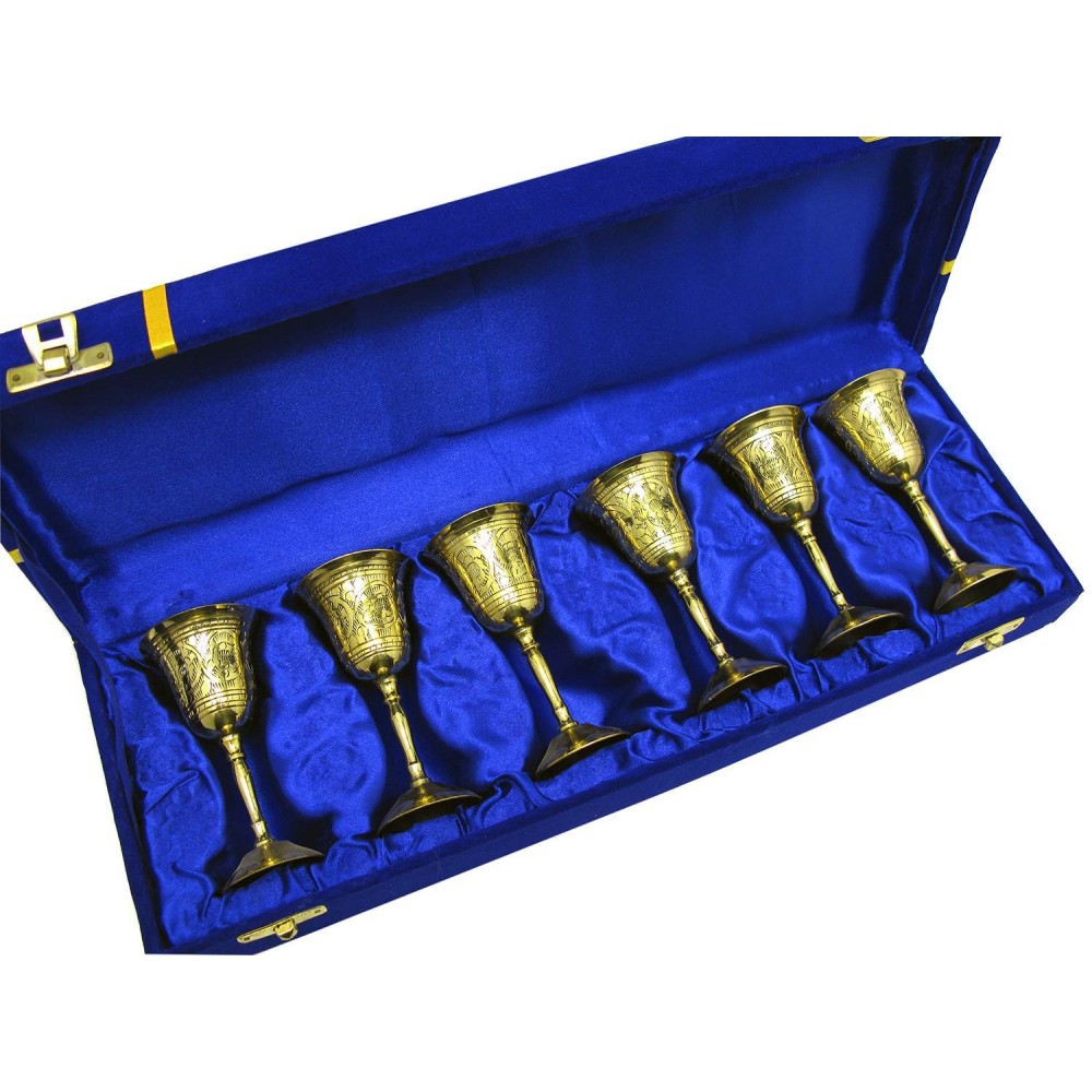 Рюмки бронзовые позолоченные(н-р 6 шт/60мл)h-10 см(39х10х6 см) код 28336