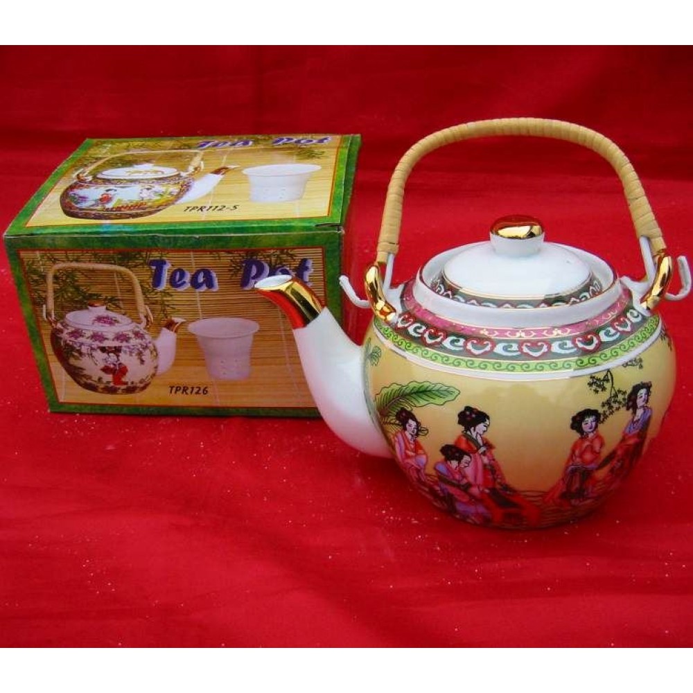 Чайник фарфор с бамбуковой ручкой (750мл.)(TPR70) Бежевый код 22543