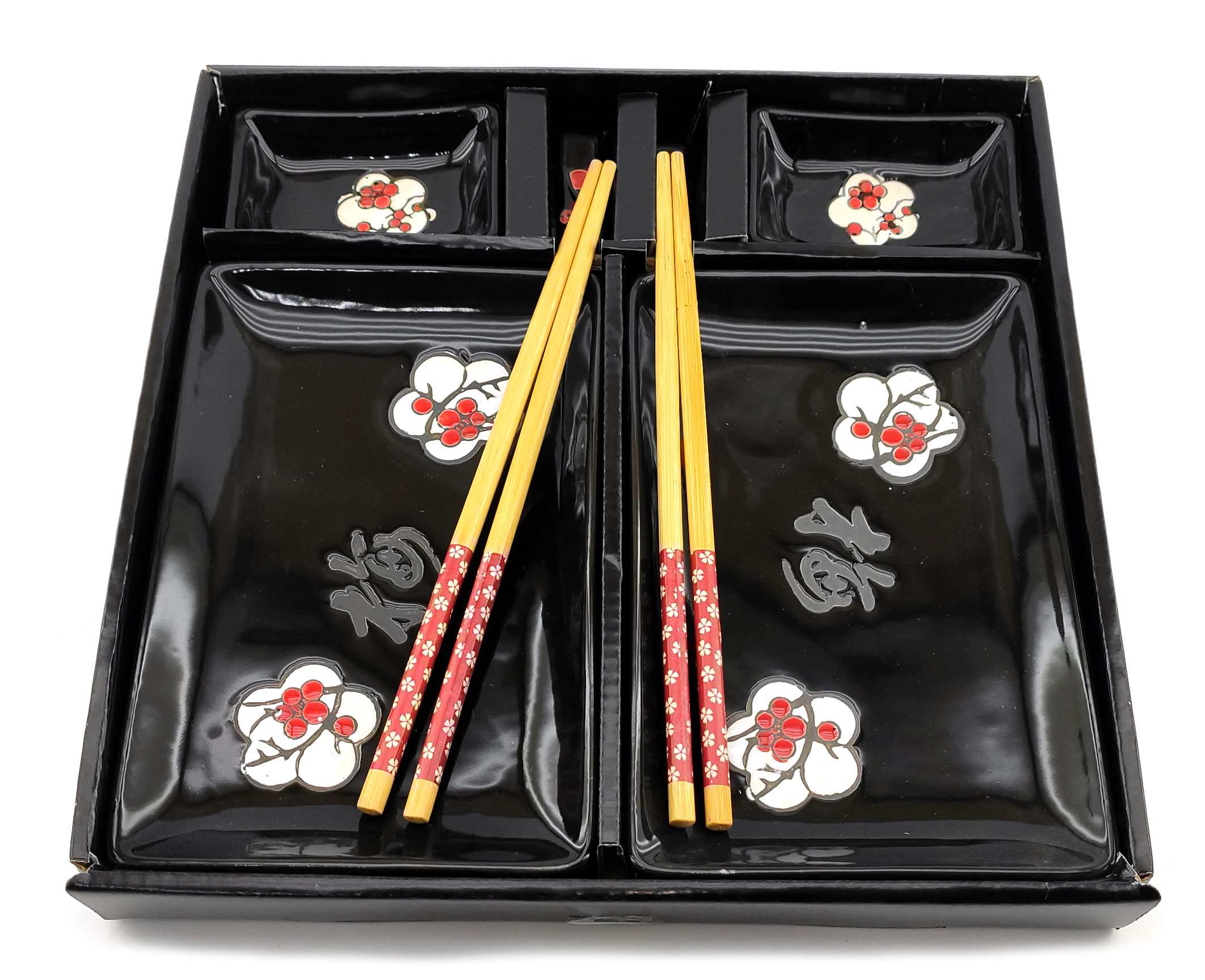 Сервиз для суши Цветы сакуры с иероглифом на черном фоне (2 персоны)(28х28,3х3,5 см)