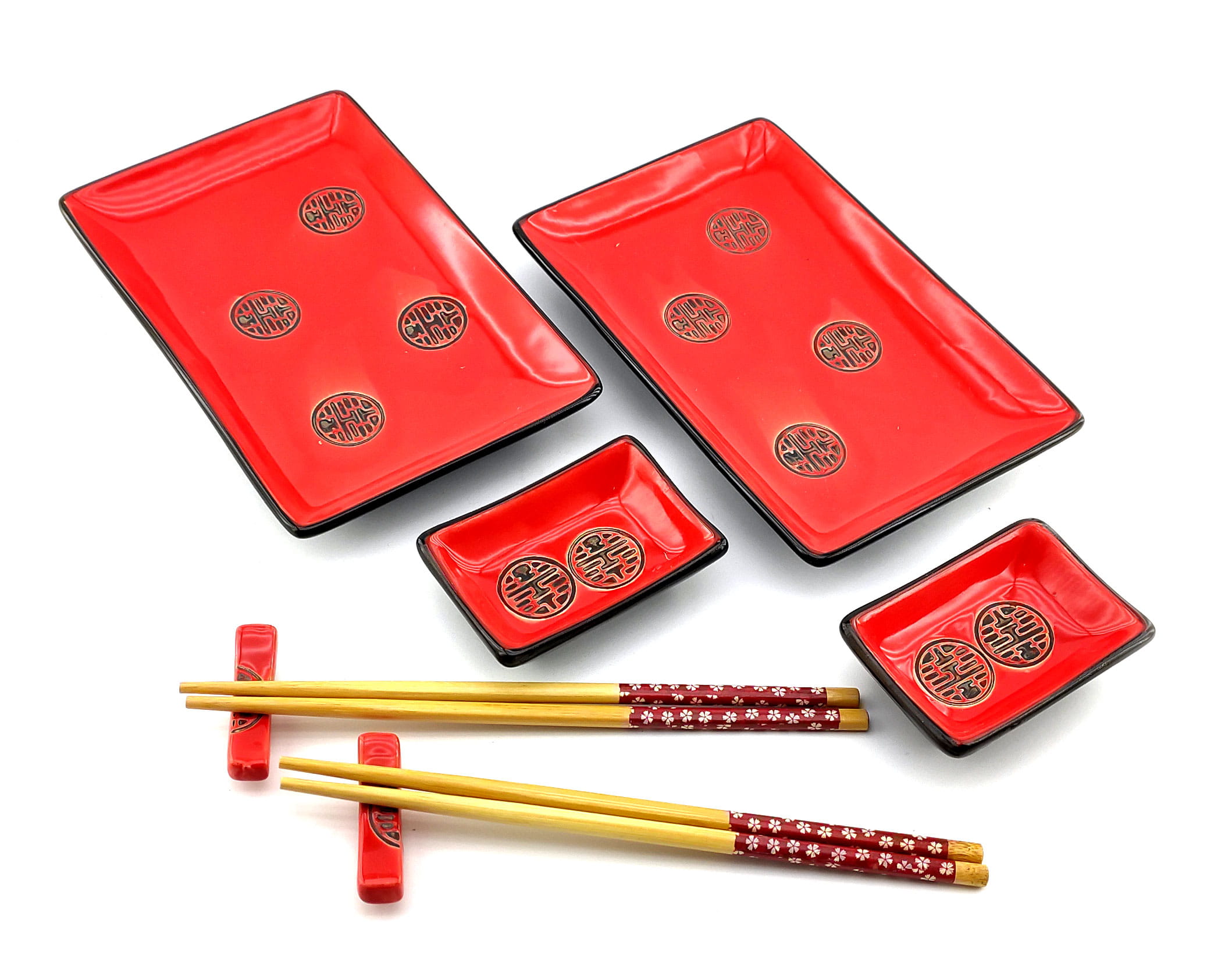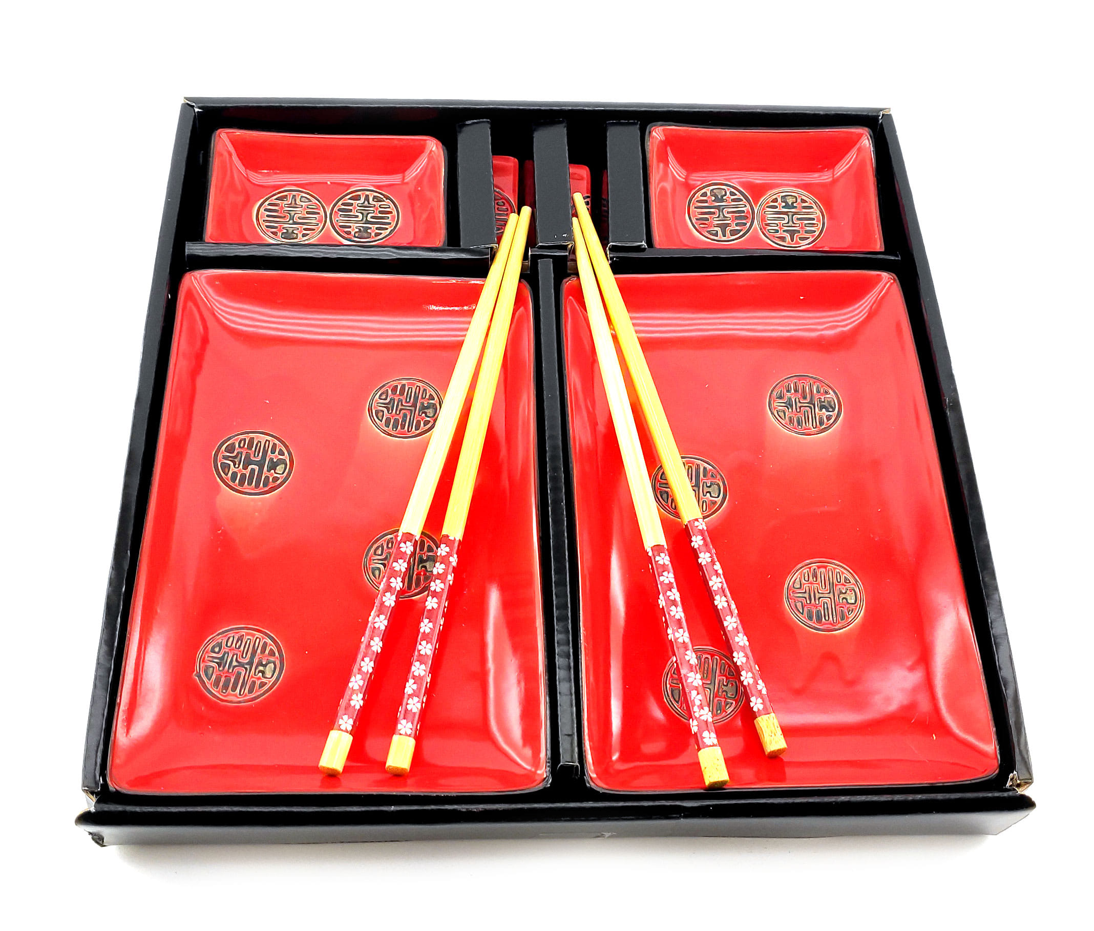 Сервиз для суши Цветы сакуры с иероглифом на черном фоне (2 персоны)(28х28,3х3,5 см)