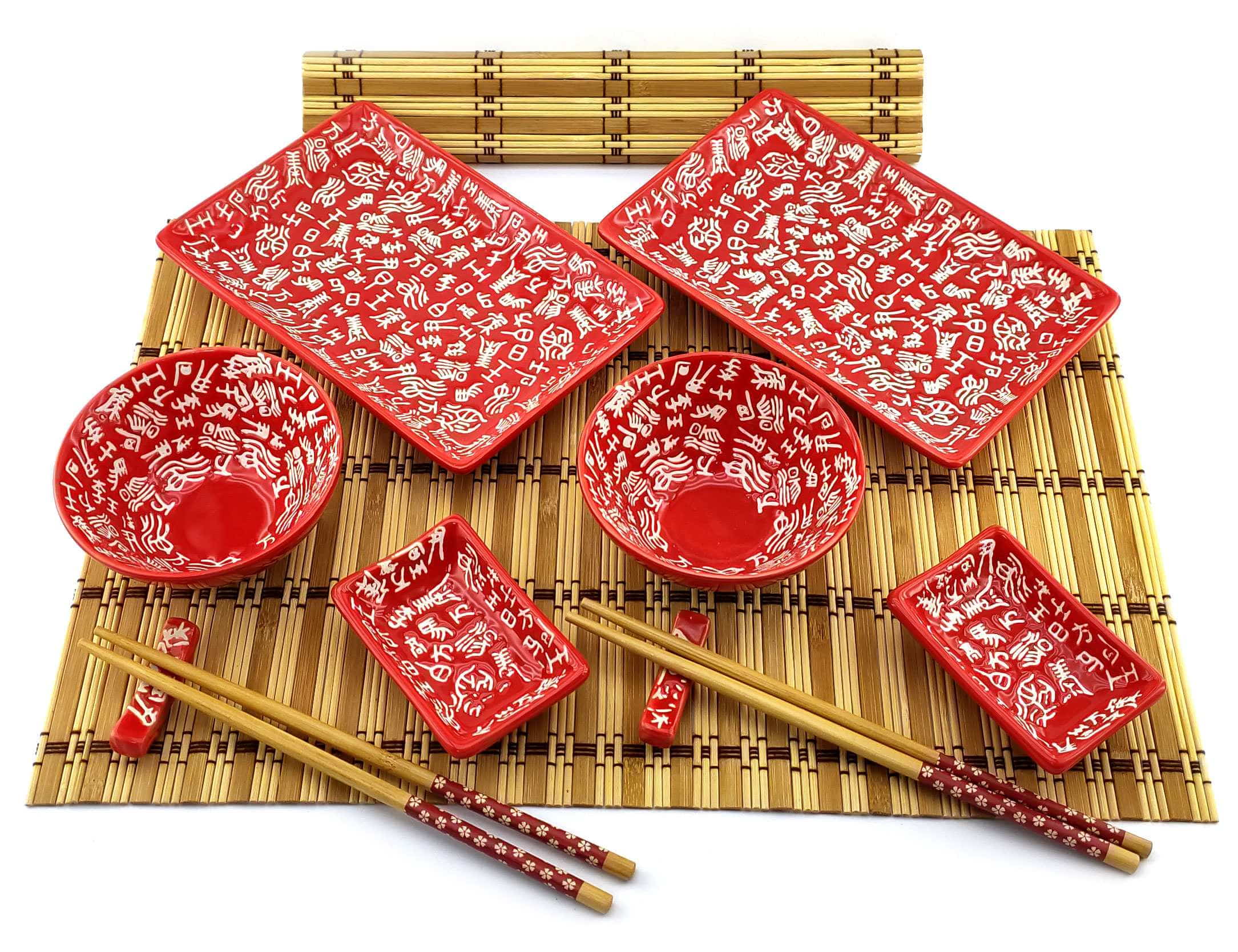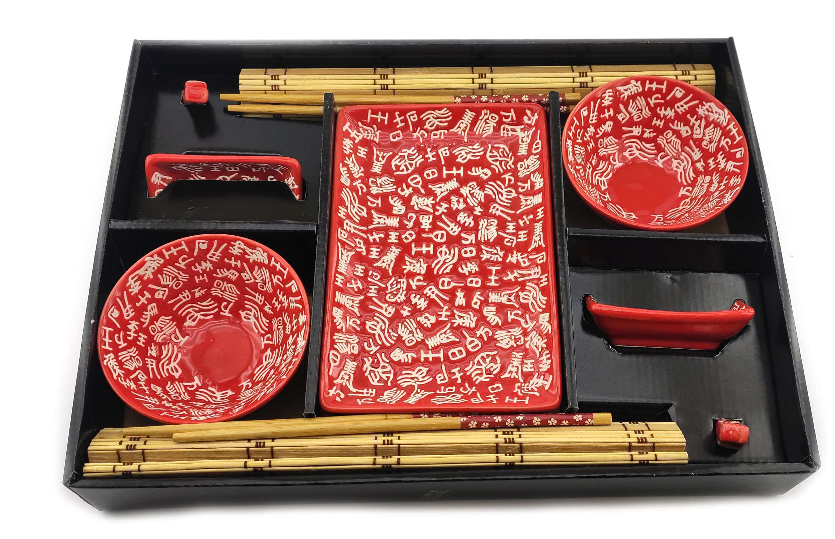 Сервиз для суши Цветы сакуры с иероглифом на черном фоне (2 персоны)(28х28,3х3,5 см)
