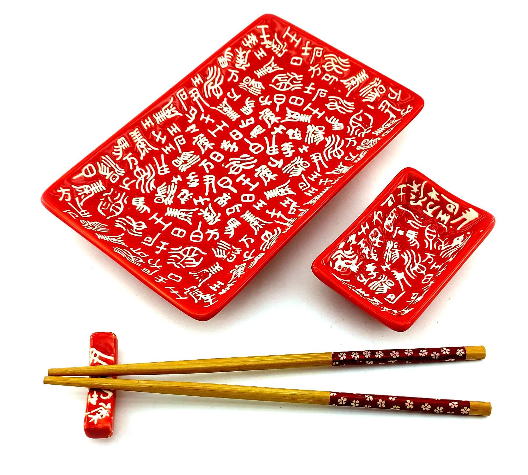 Набор расчитан на одну персону, в наборе керамическая тарелка прямоугольной формы.