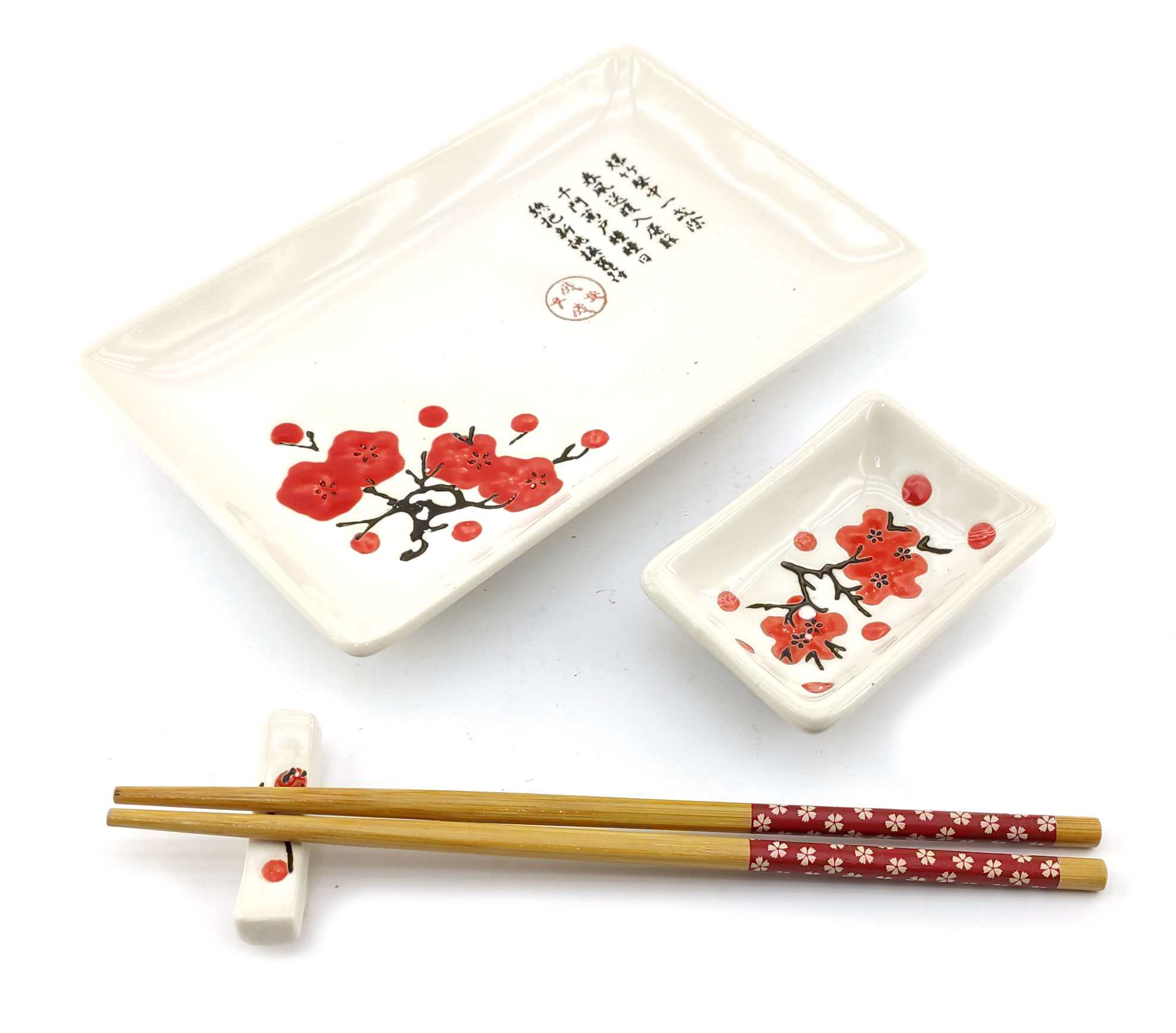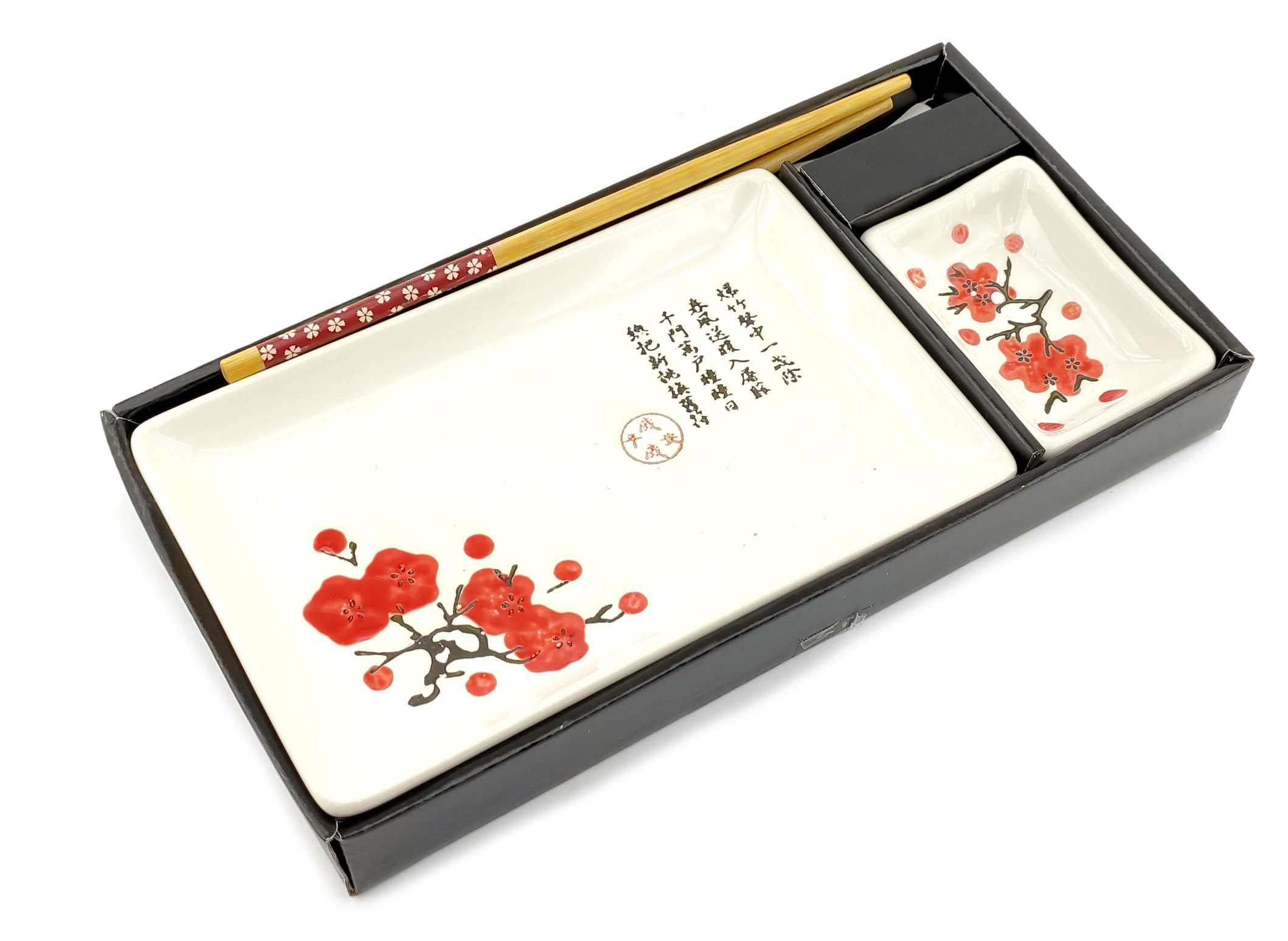 Сервиз для суши Цветы сакуры с иероглифом на красном фоне (2 персоны)(28х28,3х3,5 см)