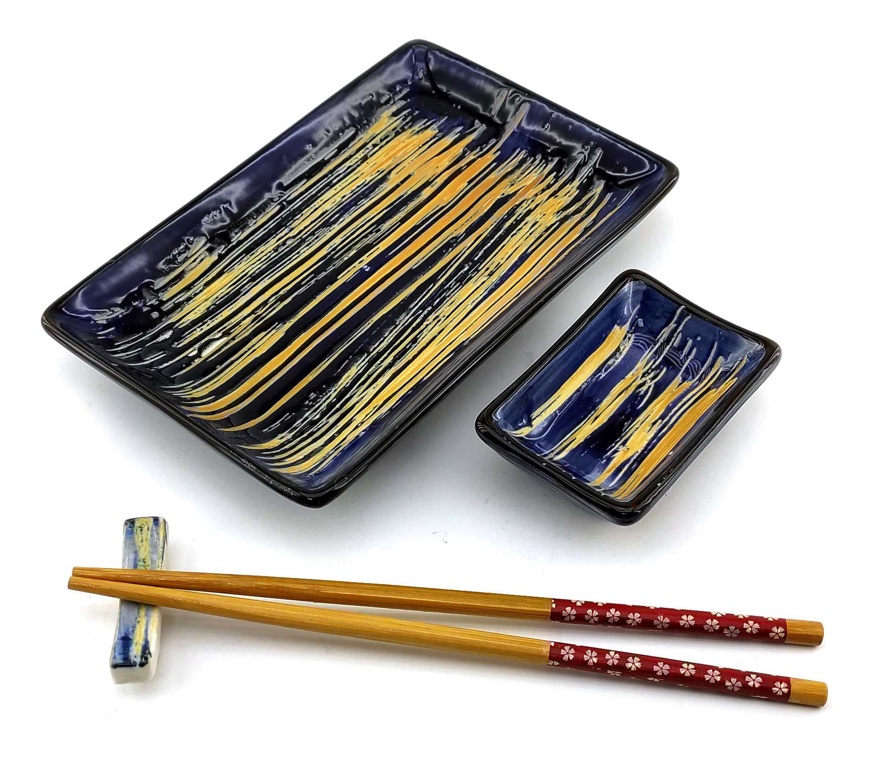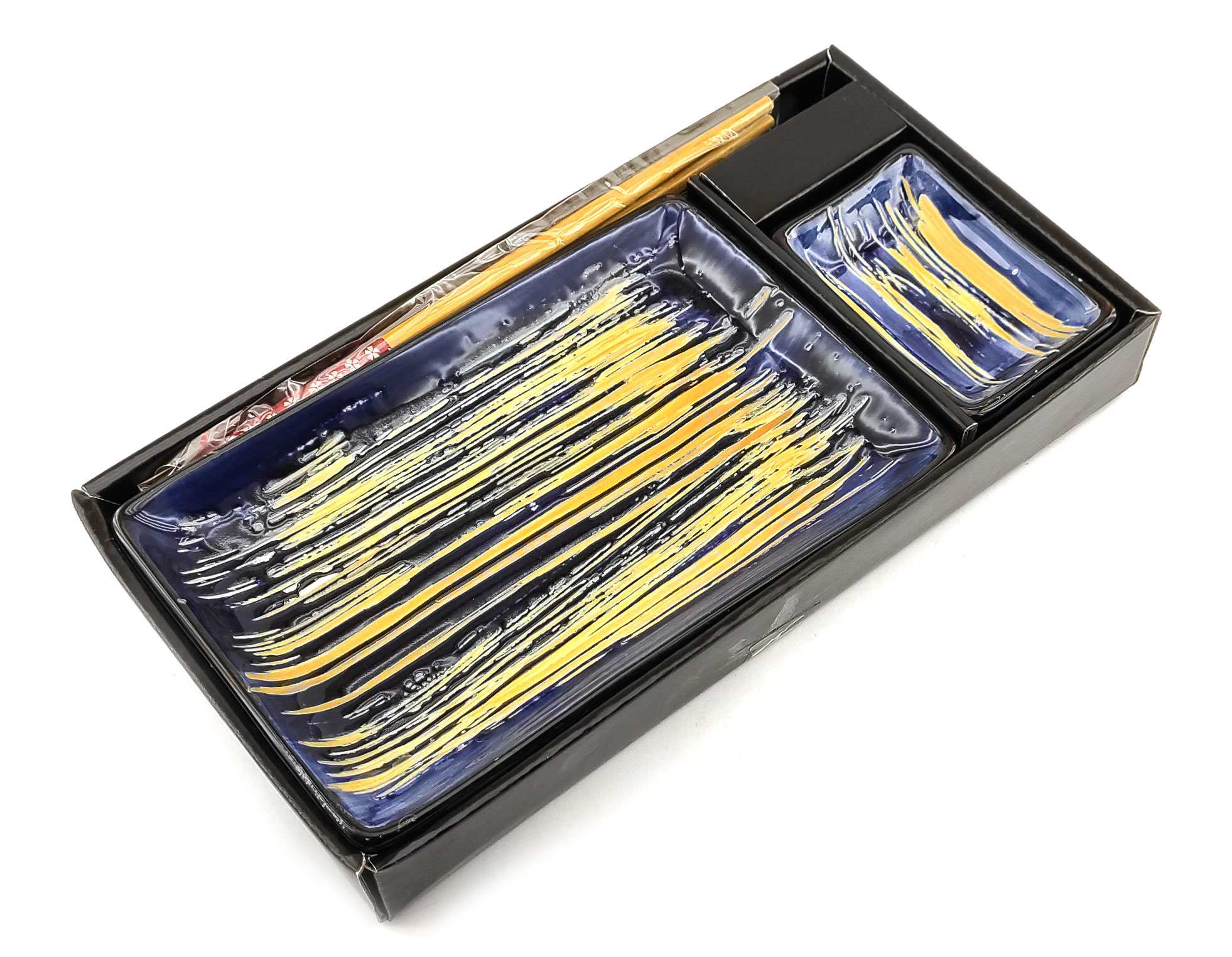 Набор расчитан на одну персону, в наборе керамическая тарелка прямоугольной формы.