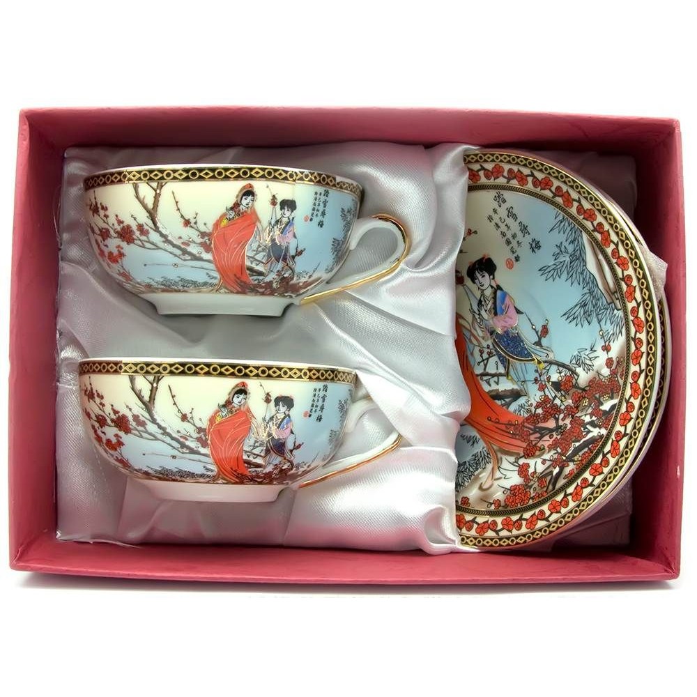 Сервиз фарфор (2SCS77) 2 чашки +2 блюдца 'Девушка' (110 мл)(h-5,2см, d-5,3см, блюдце d-11см)