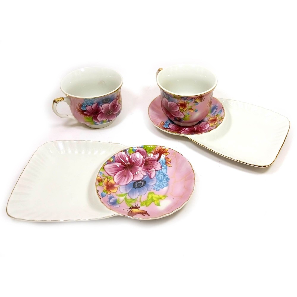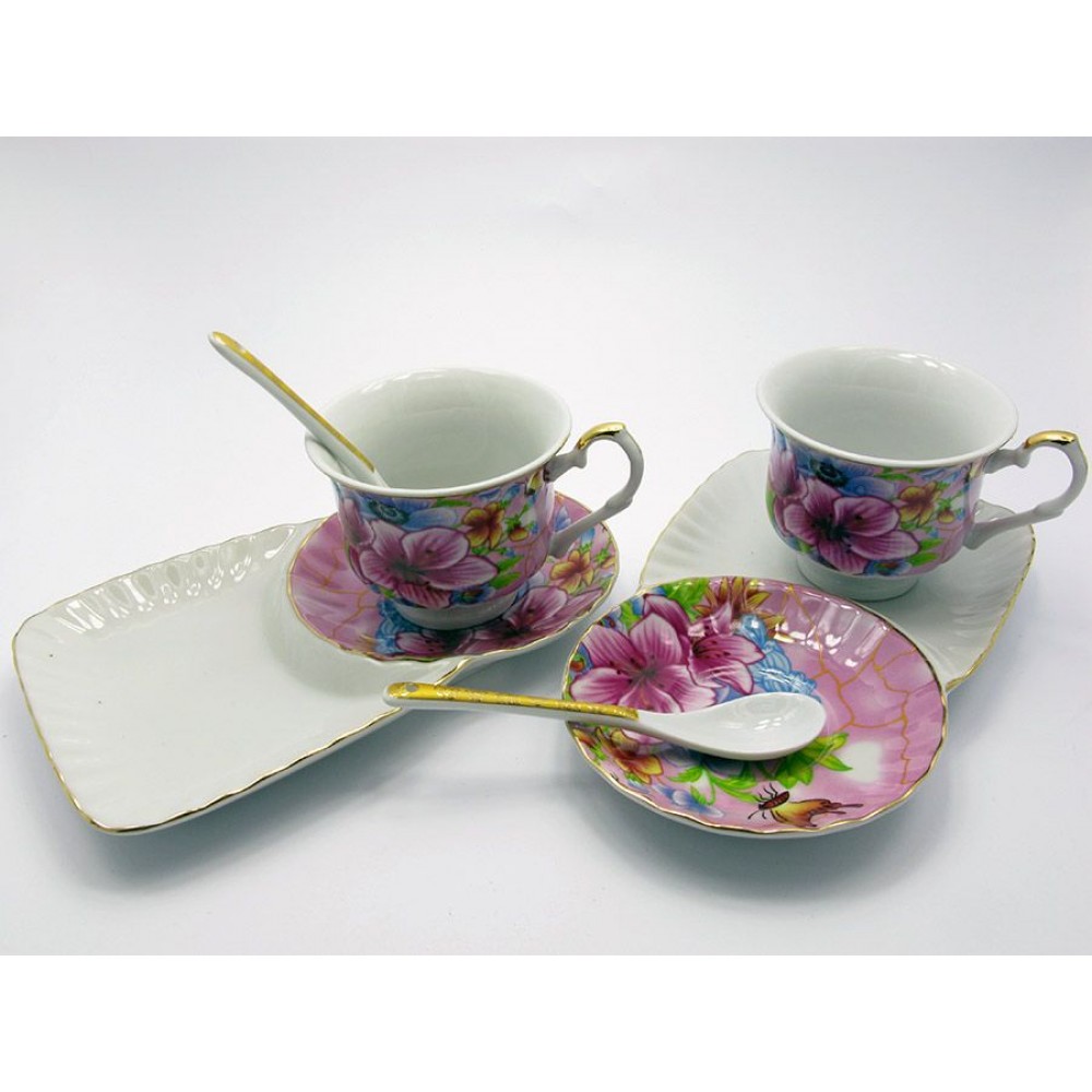 Сервиз фарфор (170 мл)(2C3133) 2 чашки + 2 блюдца Цветы (h-6.5 см.d-8.5см.блюдце 21х12 см) код 19216