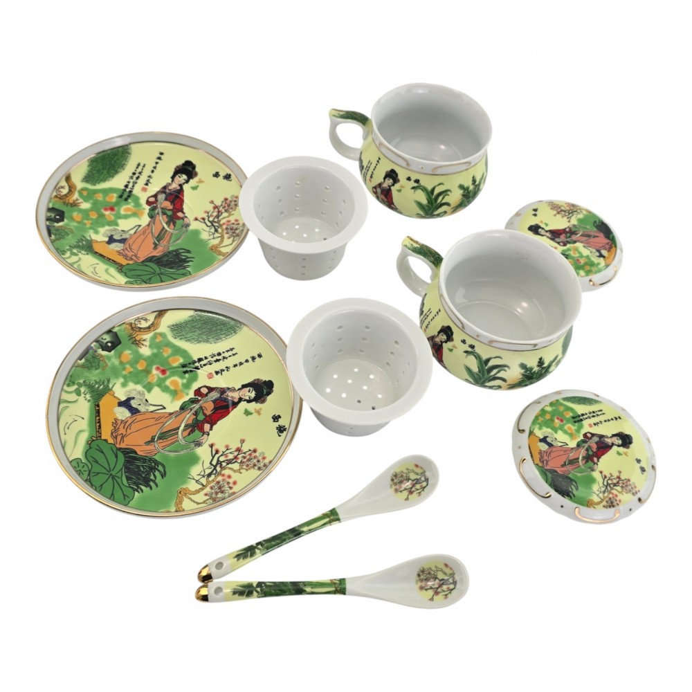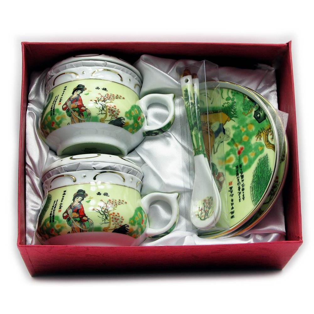 Сервиз фарфор (2JBS86-3) 2 чашки +2 блюдца Девушки под ивой (210 мл)(h-6см,d-10см,d блюдца-15 см)