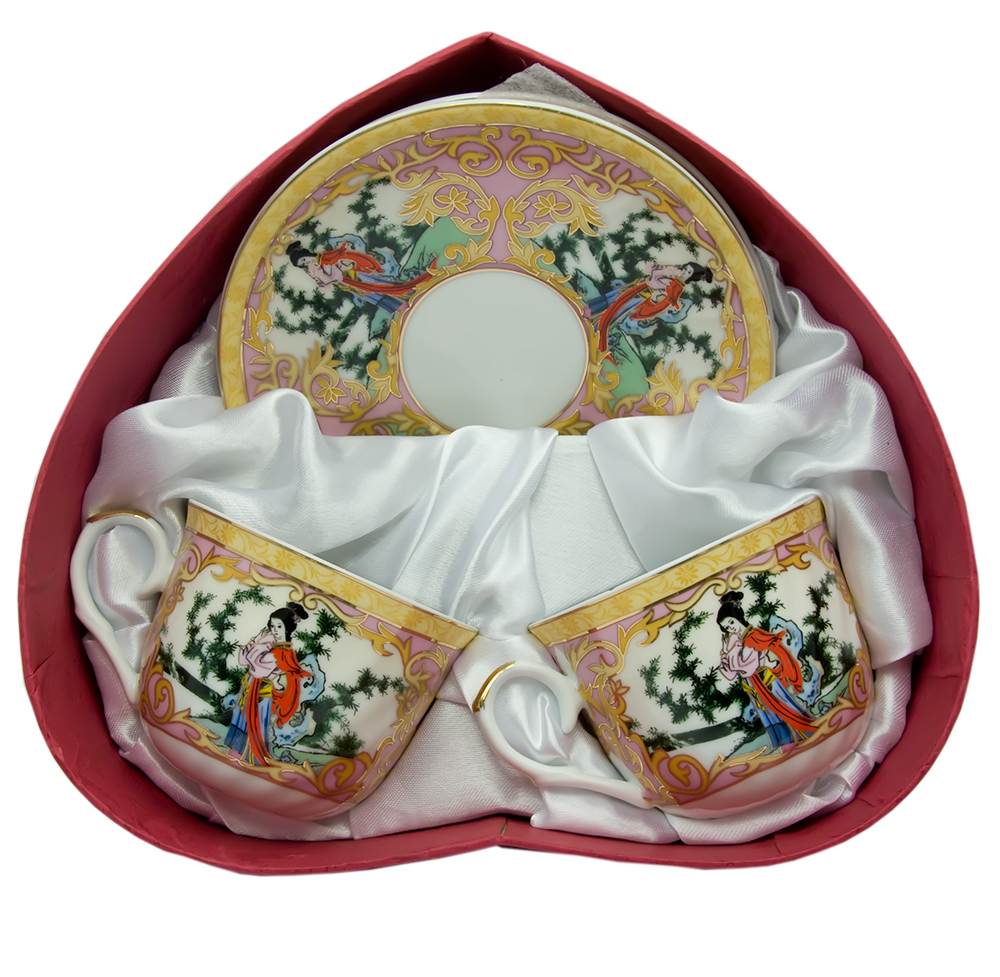 Сервиз фарфор (2HE79) 2 чашки +2 блюдца Девушки (160мл)(h-6см,d-8см,d блюдца 14 см)