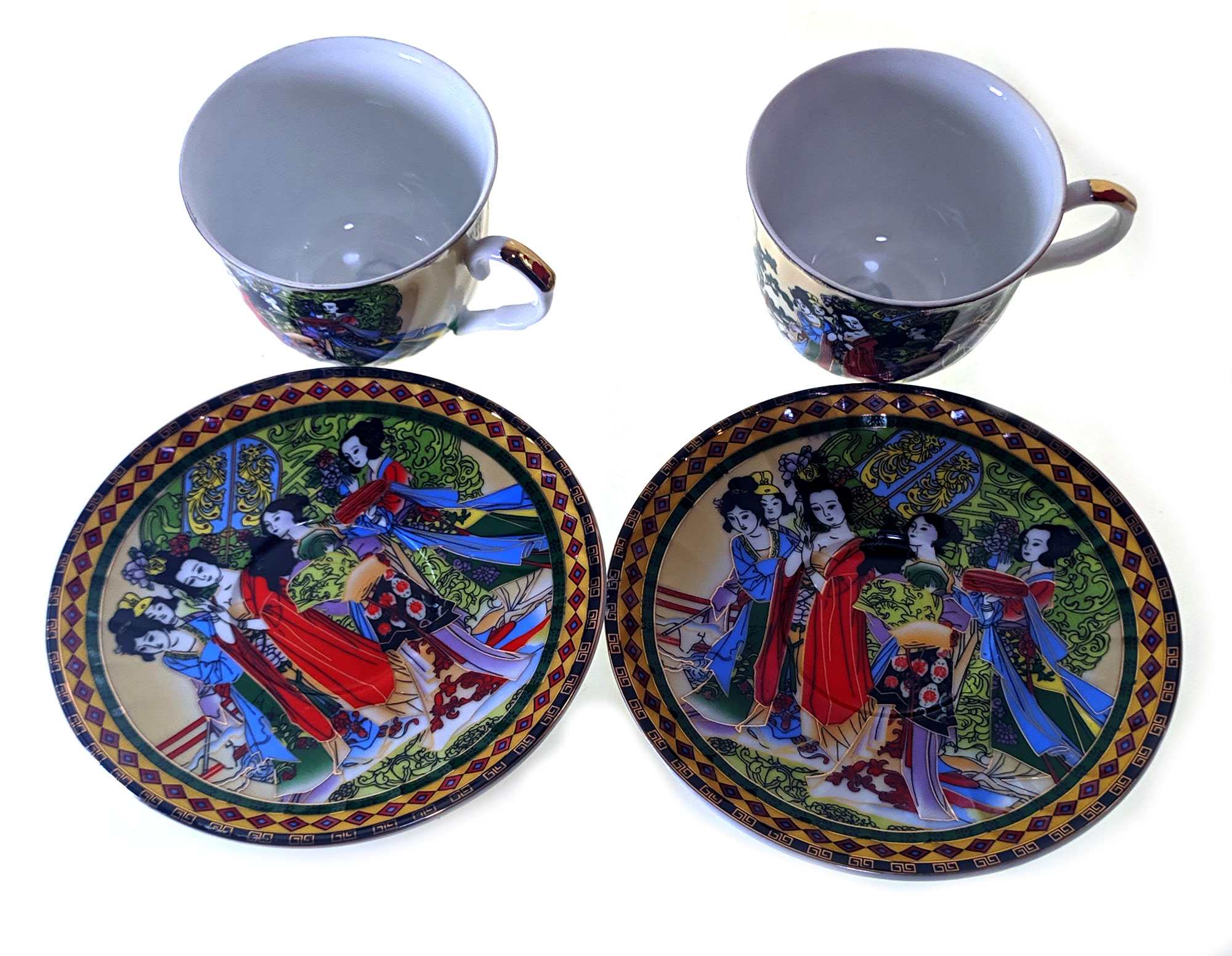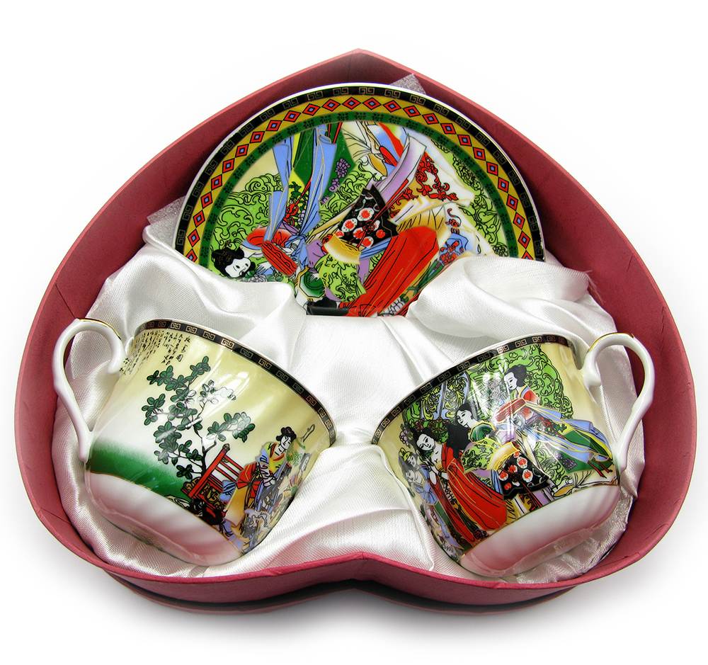 Сервиз фарфор (2HE79) 2 чашки +2 блюдца Девушки (160мл)(h-6см,d-8см,d блюдца 14 см)