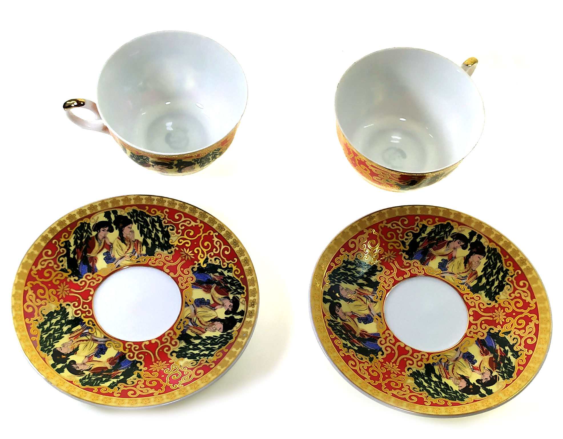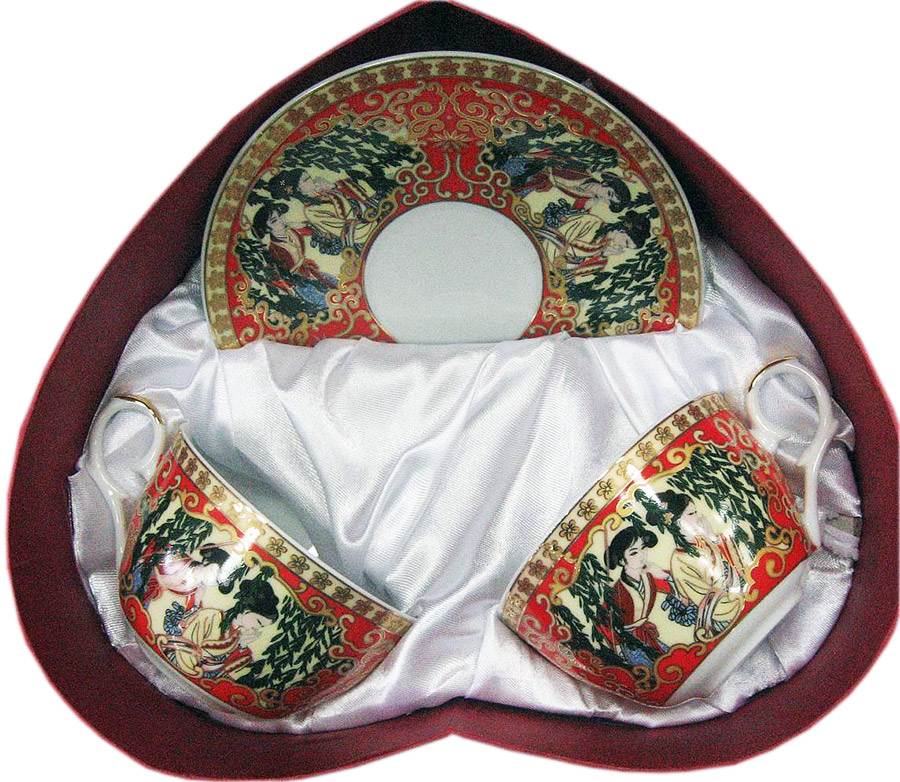 Сервиз фарфор (2JBS75) 2 чашки +2 блюдца Девушки (210 мл)(h-6см,d-10см,d блюдца-15 см)