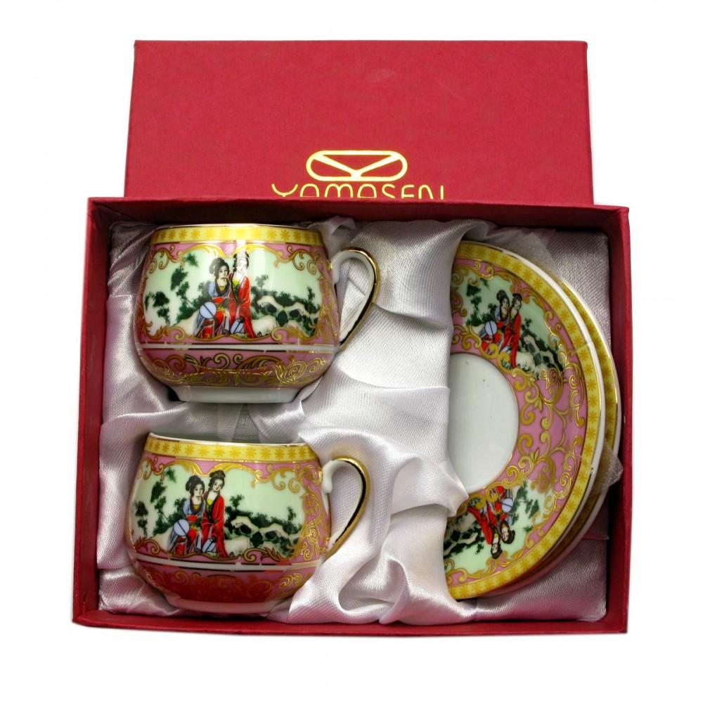 Сервиз фарфор (2SCS108-8) 2 чашки +2 блюдца 'Гейши' (110 мл)(h-5,2см, d-5,3см, блюдце d-11см)