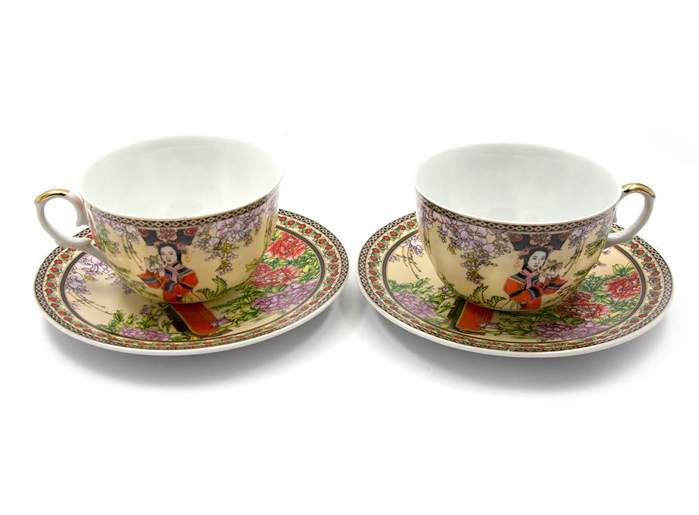 Сервиз фарфор сердце (2JBS126) 2 чашки +2 блюдца Гейша (210 мл)(h-6см,d-10см,d блюдца-15 см)