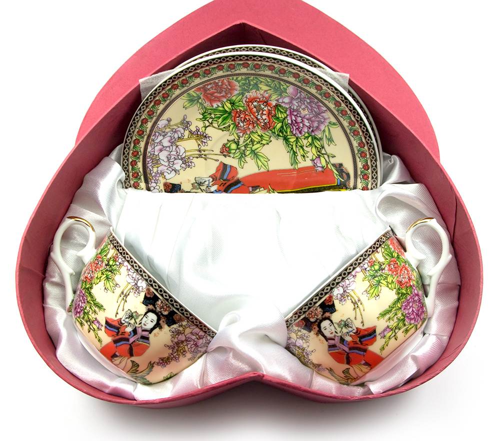 Сервиз фарфор сердце (2JBS126) 2 чашки +2 блюдца Гейша (210 мл)(h-6см.d-10см.d блюдца-15 см) код 24771
