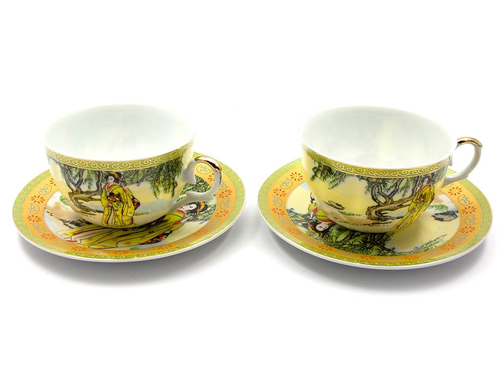 Сервиз фарфор (2JBS78) 2 чашки +2 блюдца Танцовщицы (210 мл)(h-6см,d-10см,d блюдца-15 см)