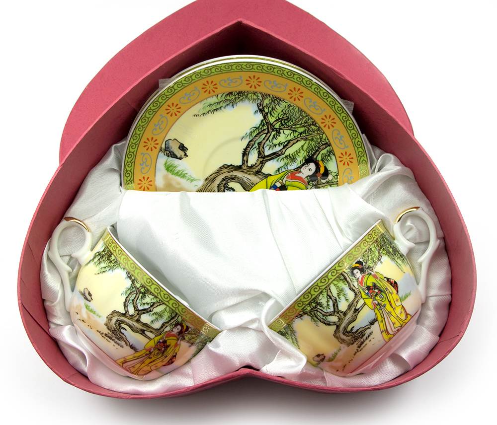 Сервиз фарфор сердце (2JBS136-4) 2 чашки +2 блюдца Желтый (210 мл)(h-6см.d-10см.d блюдца-15 см) код 24773