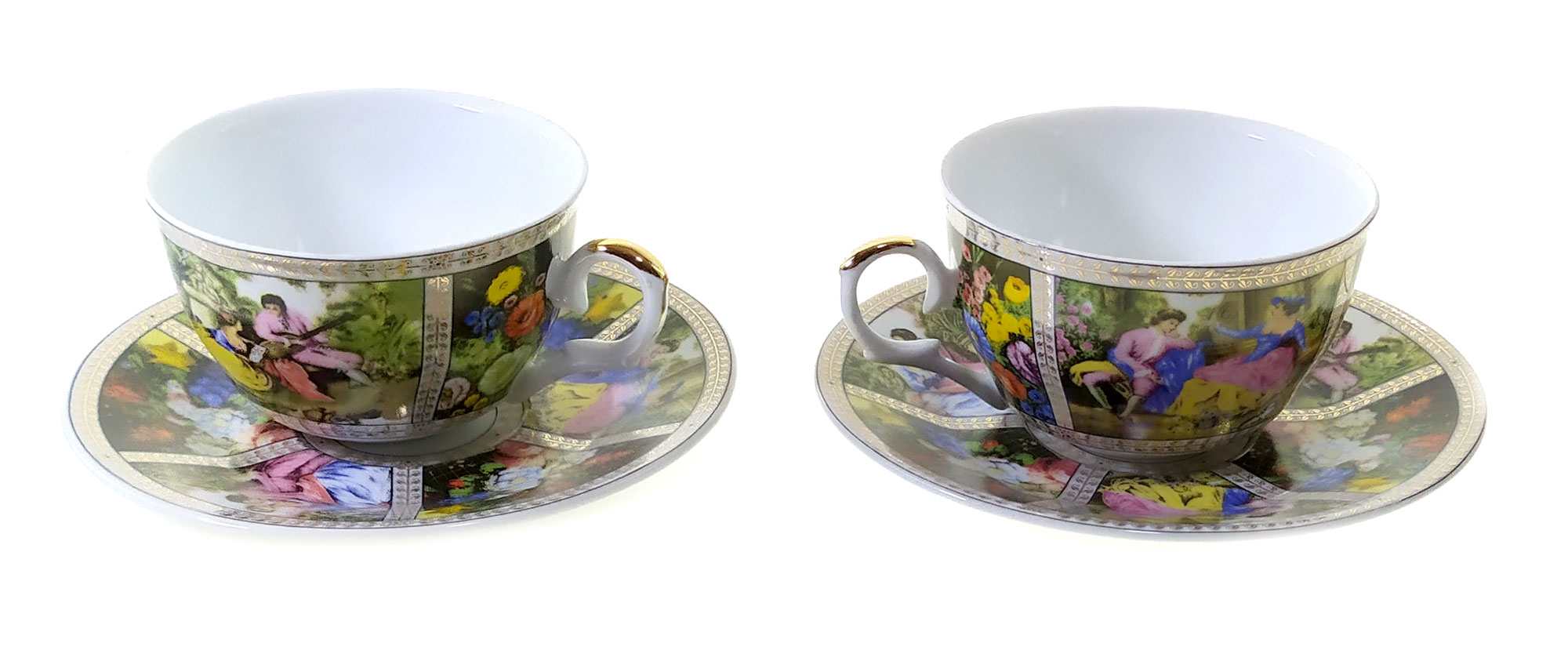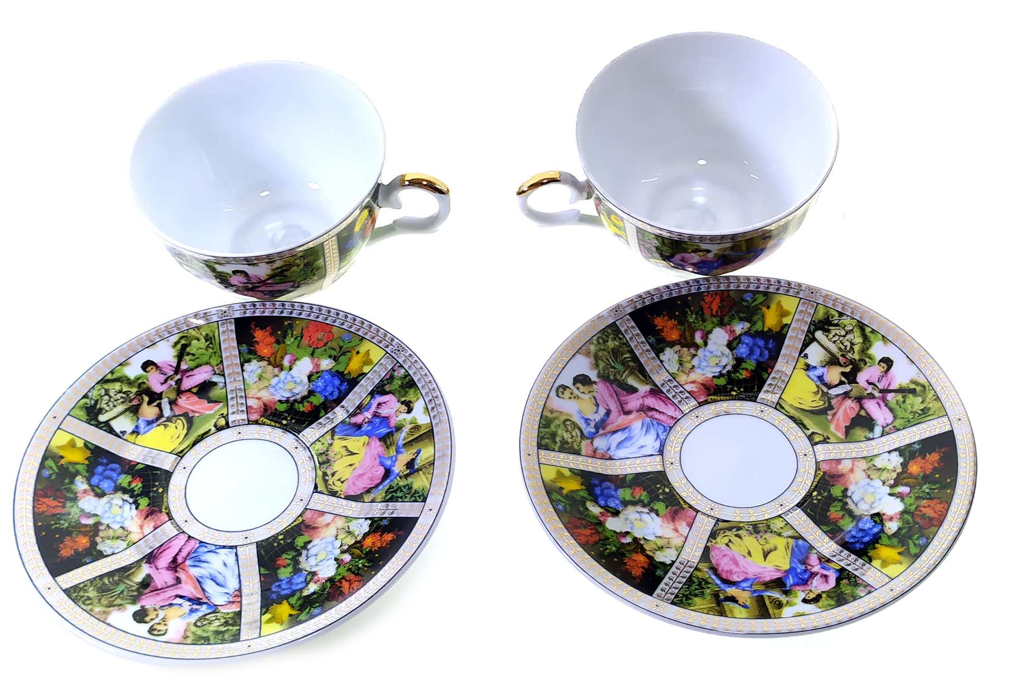 Сервиз фарфор (2JBS29-4) 2 чашки +2 блюдца Девушки (210 мл)(h-6см,d-10см,d блюдца-15 см)