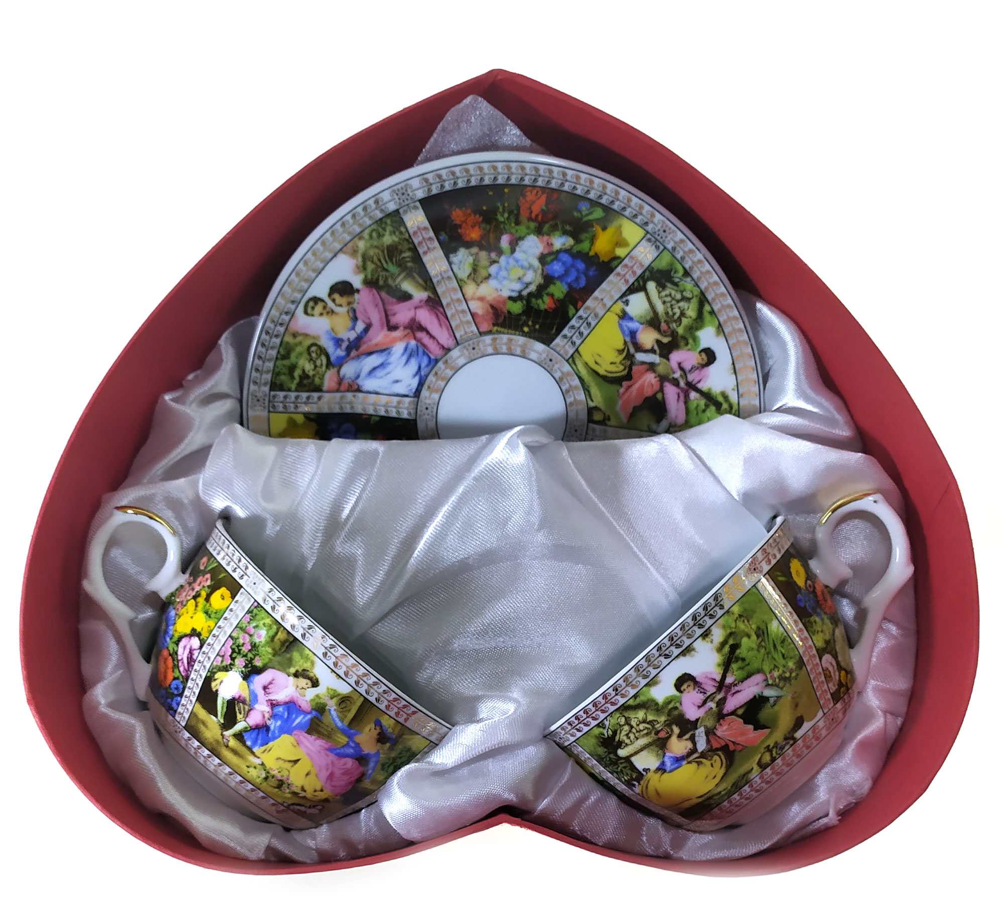 Сервиз фарфор сердце (2JBS138) 2 чашки +2 блюдца (210 мл)(h-6см,d-10см,d блюдца-15 см)