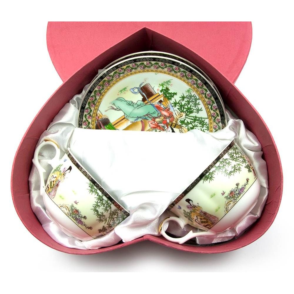 Сервиз фарфор сердце (2JBS89) 2 чашки +2 блюдца 'Девушки' (210 мл)(h-6см,d-10см,d блюдца-15 см)