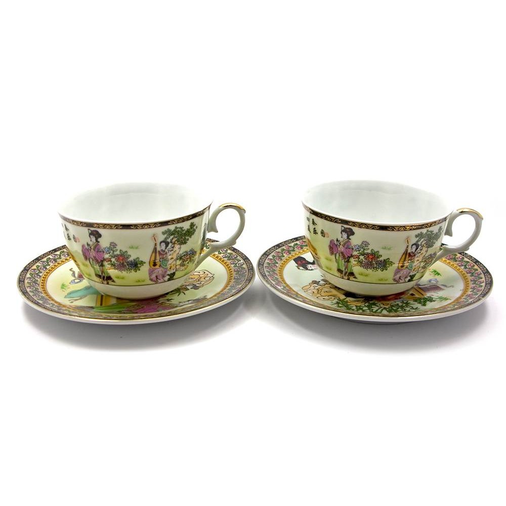 Сервиз фарфор (2JBS112-3) 2 чашки +2 блюдца 'Девушки' (210 мл)(h-6см,d-10см,d блюдца-15 см)