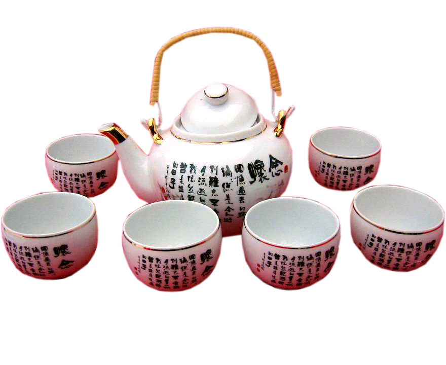 Сервиз фарфор (TSR6023) 1 чайник+6 чашек Иероглифы (200/800 мл, чашка/чайник)