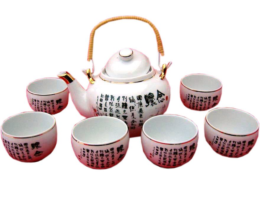 Сервиз фарфор (TSR6023) 1 чайник+6 чашек Иероглифы (200/800 мл. чашка/чайник) код 22537