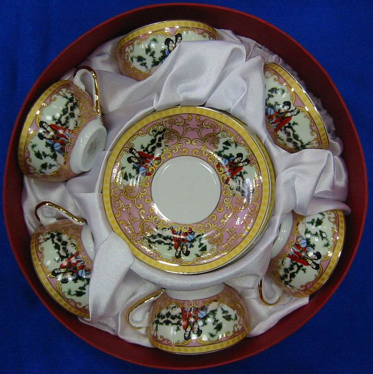 Сервиз фарфор (2JBS75) 2 чашки +2 блюдца Девушки (210 мл)(h-6см,d-10см,d блюдца-15 см)