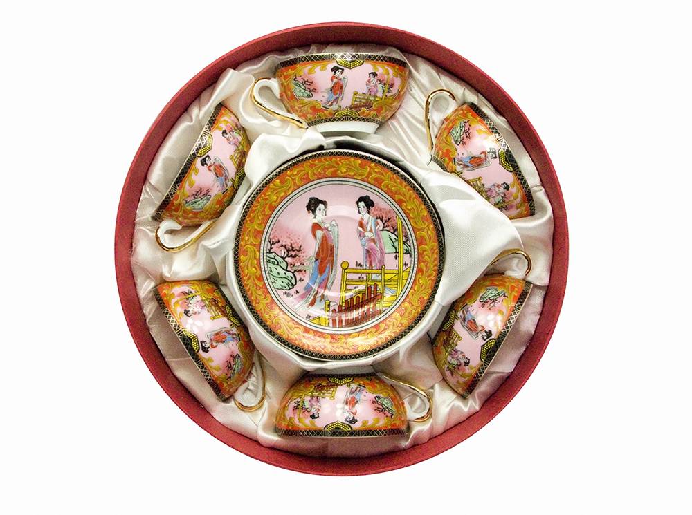 Сервиз круглый фарфор (70мл.)(6CCS112-1)6 чашек+6 блюдец Девушки(h-4см, d-7,3см,d блюдца 11 см)