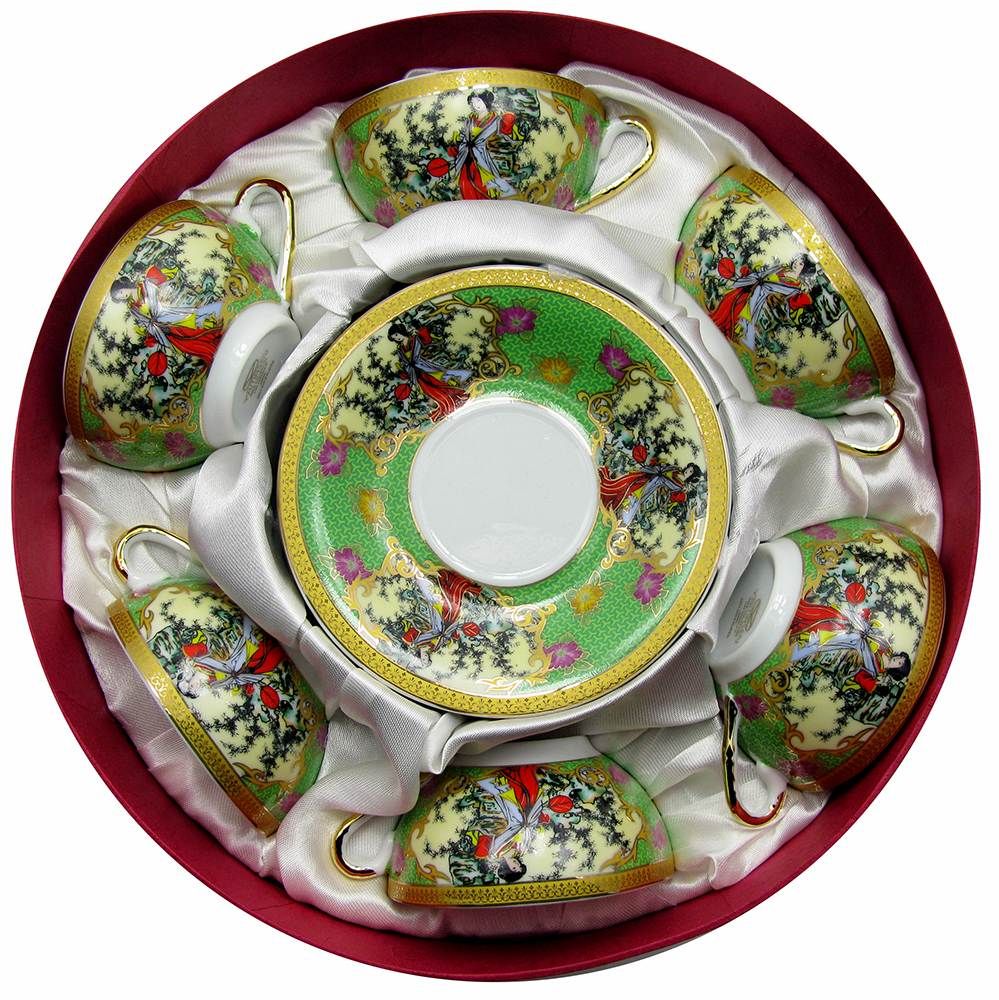Сервиз круглый фарфор (70мл.)(6CCS129-3) Зеленый (h-4см, d-7,3см,d блюдца 11 см)