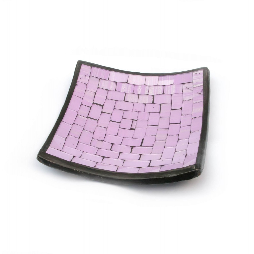 Блюдо терракотовое с фиолетовой мозаикой (14.5х14.5х2 см) код 29418