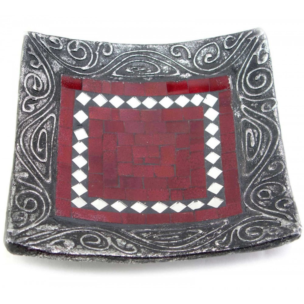 Блюдо терракотовое с красной мозаикой (20.5х20.5х6 см) код 30276