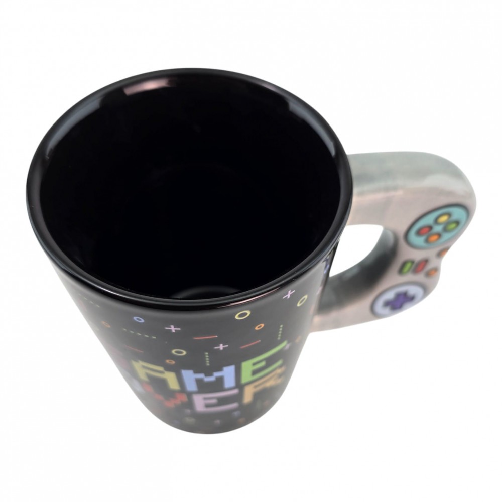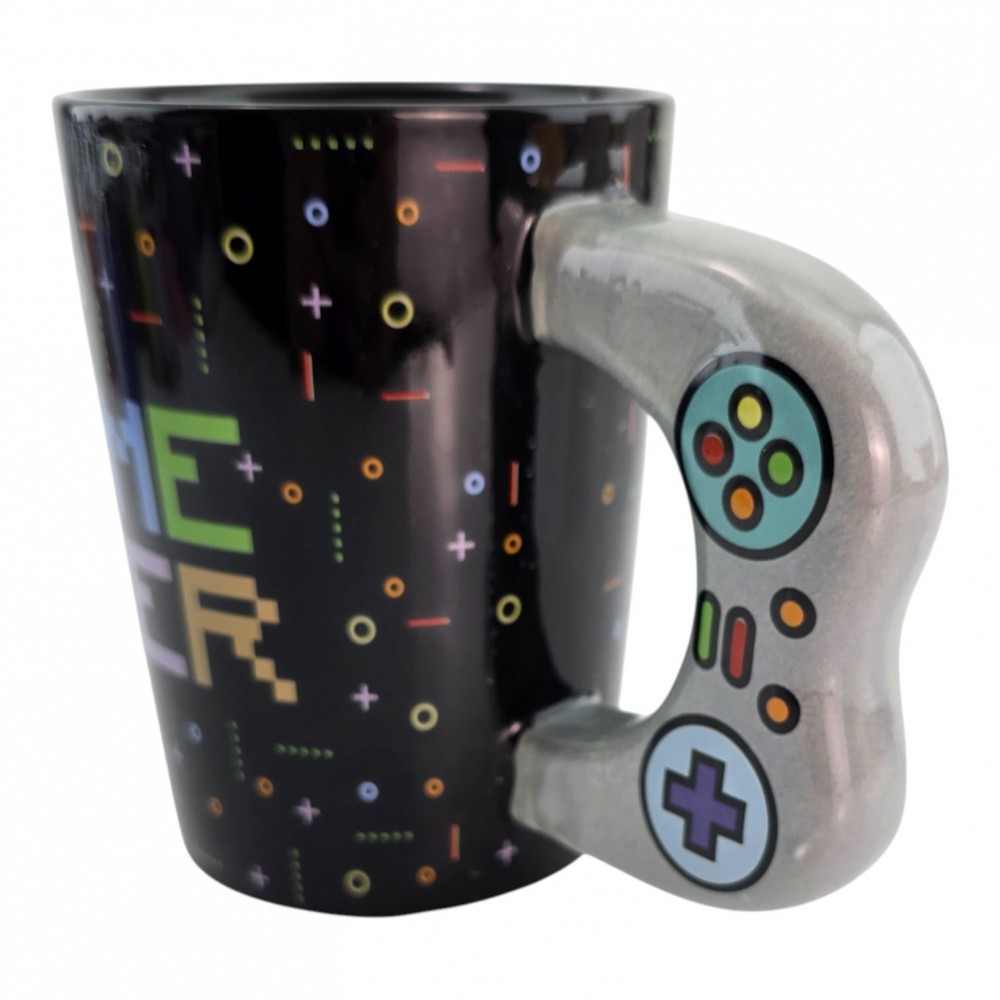 Стильная керамическая кружка для любителей видеоигр. Объём 380 мл и удобная рельефная ручка в виде геймпада с кнопками. Яркий принт GAME OVER делает кружку заметной в офисе и дома. Отличный подарок геймеру, подростку или коллеге.